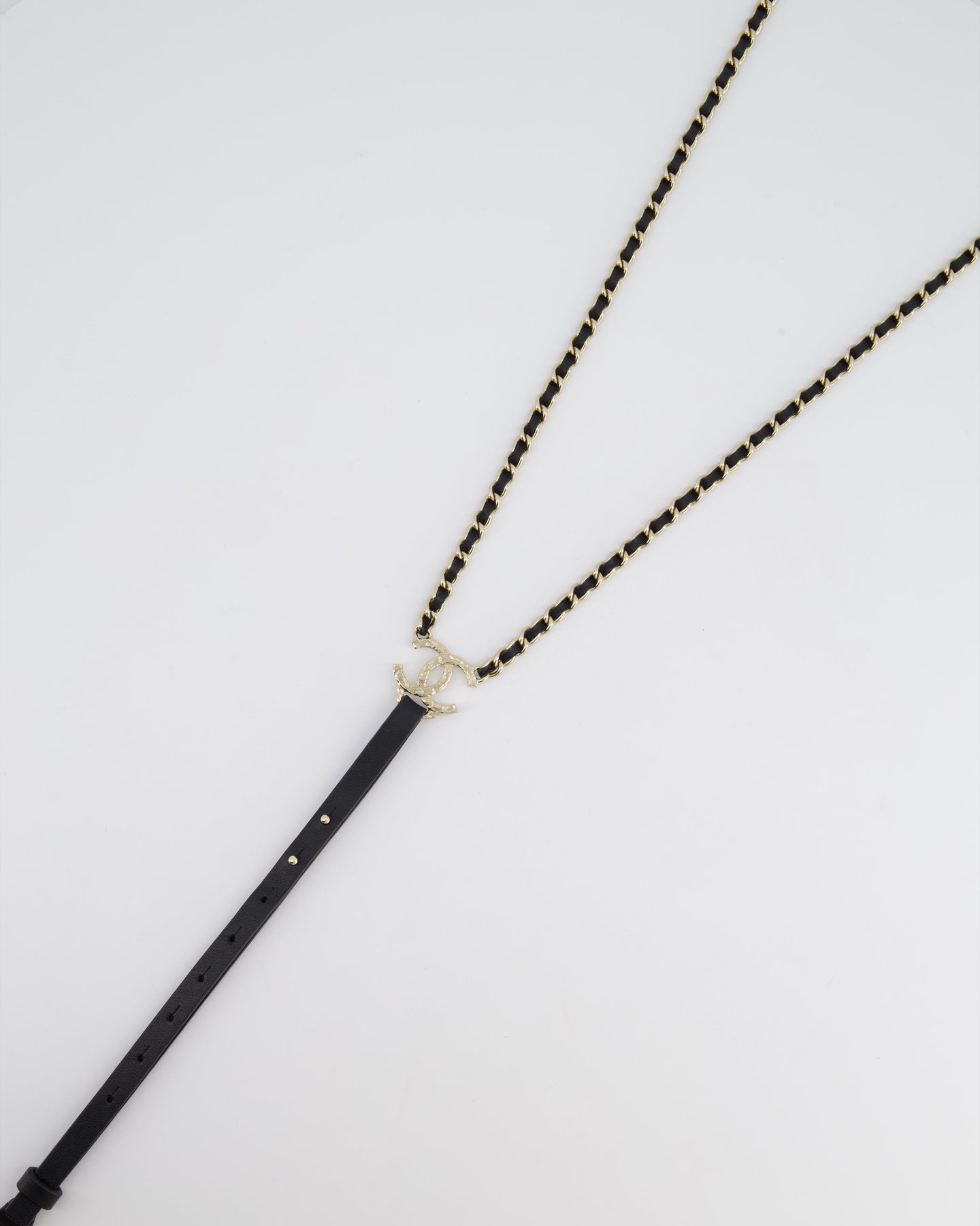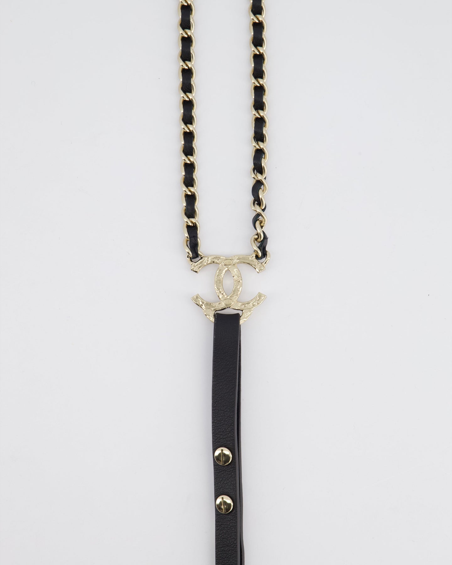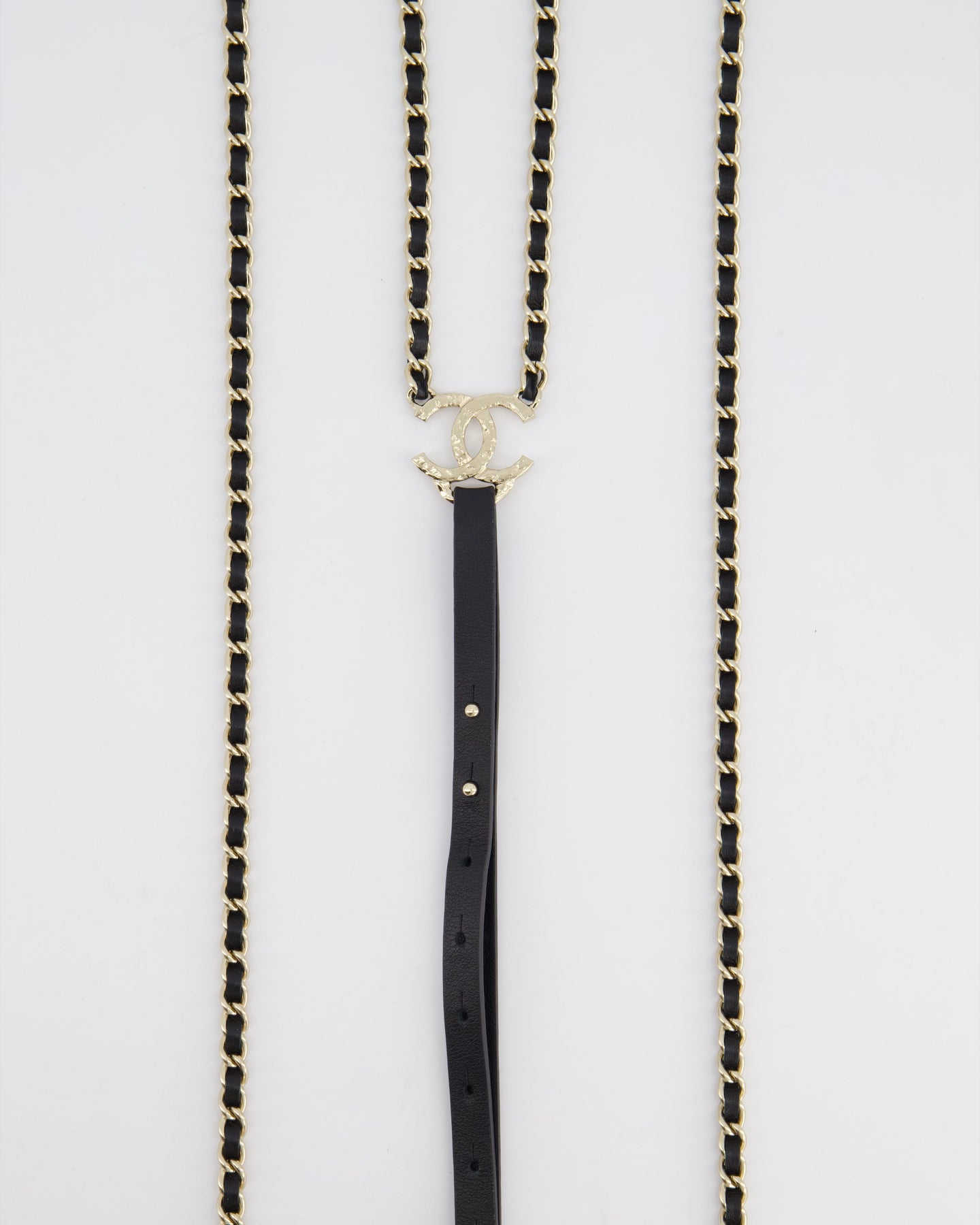 Chanel Leather and Silver Chain Suspenders With CC Logo Detail