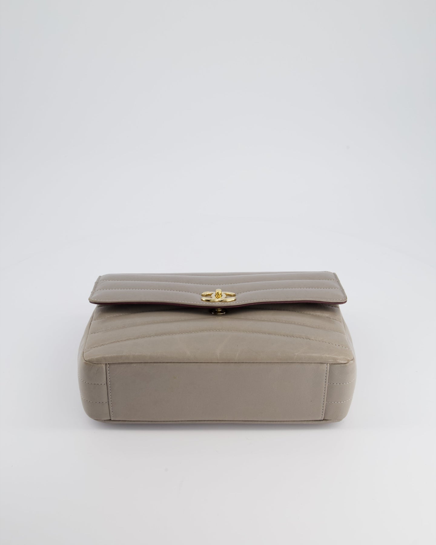 Chanel Light Grey Chevron Miroir Flap Bag in Distressed Calfskin Leather with Champagne Gold Hardware