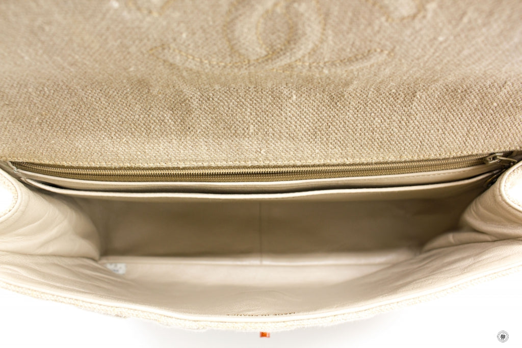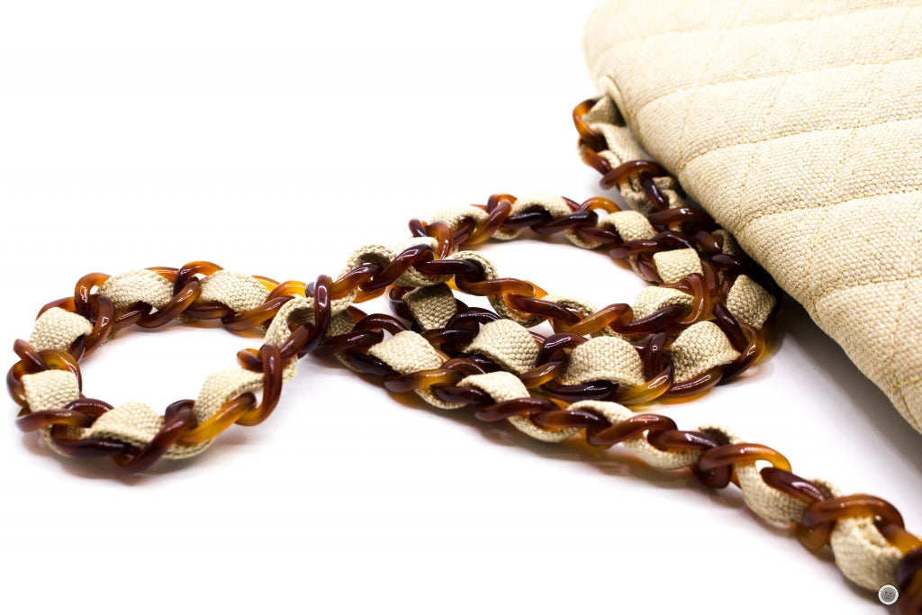 Chanel Linen Canvas Flap Bag With Tortoise Chain And CC L Natural Canvas Shoulder Bags