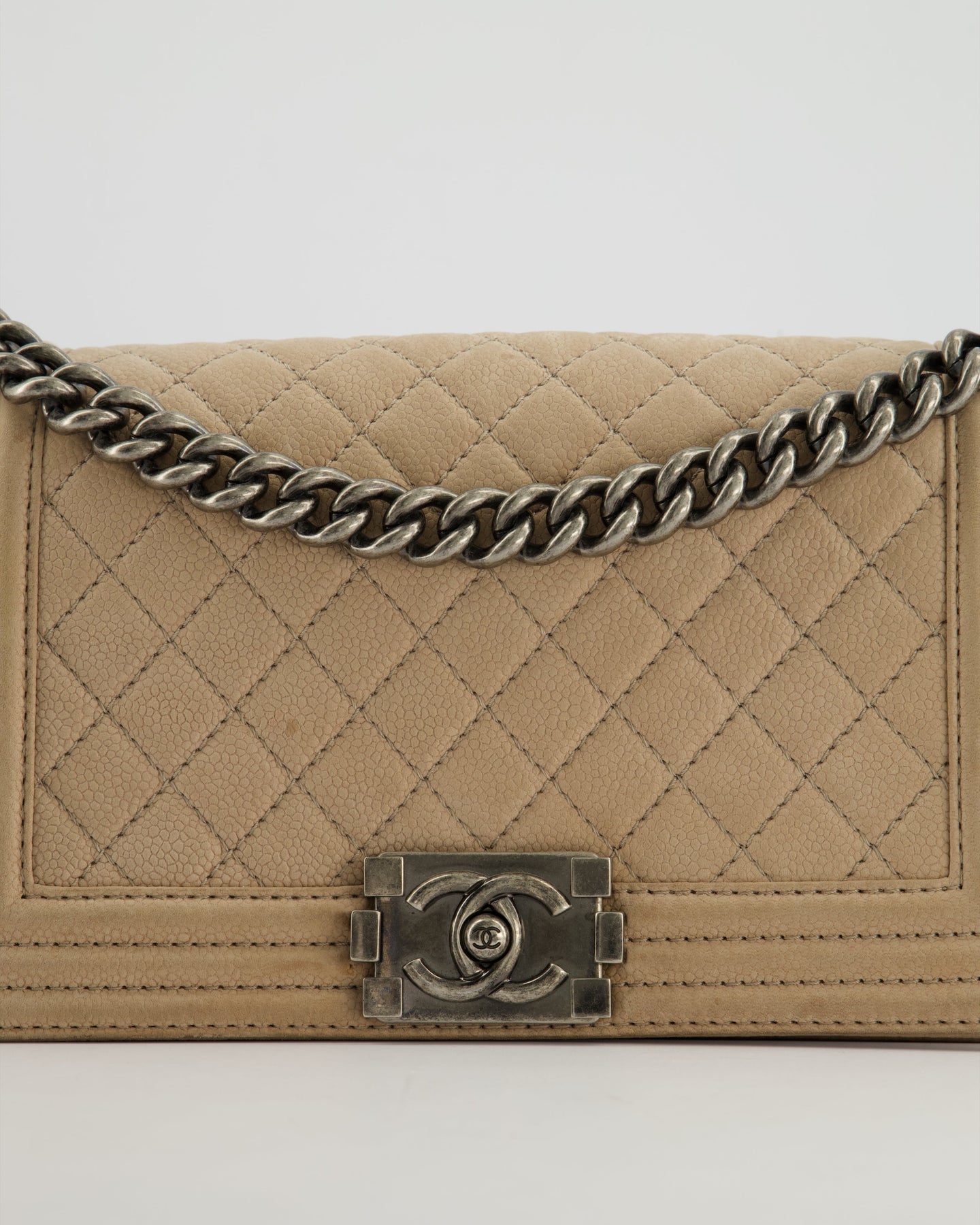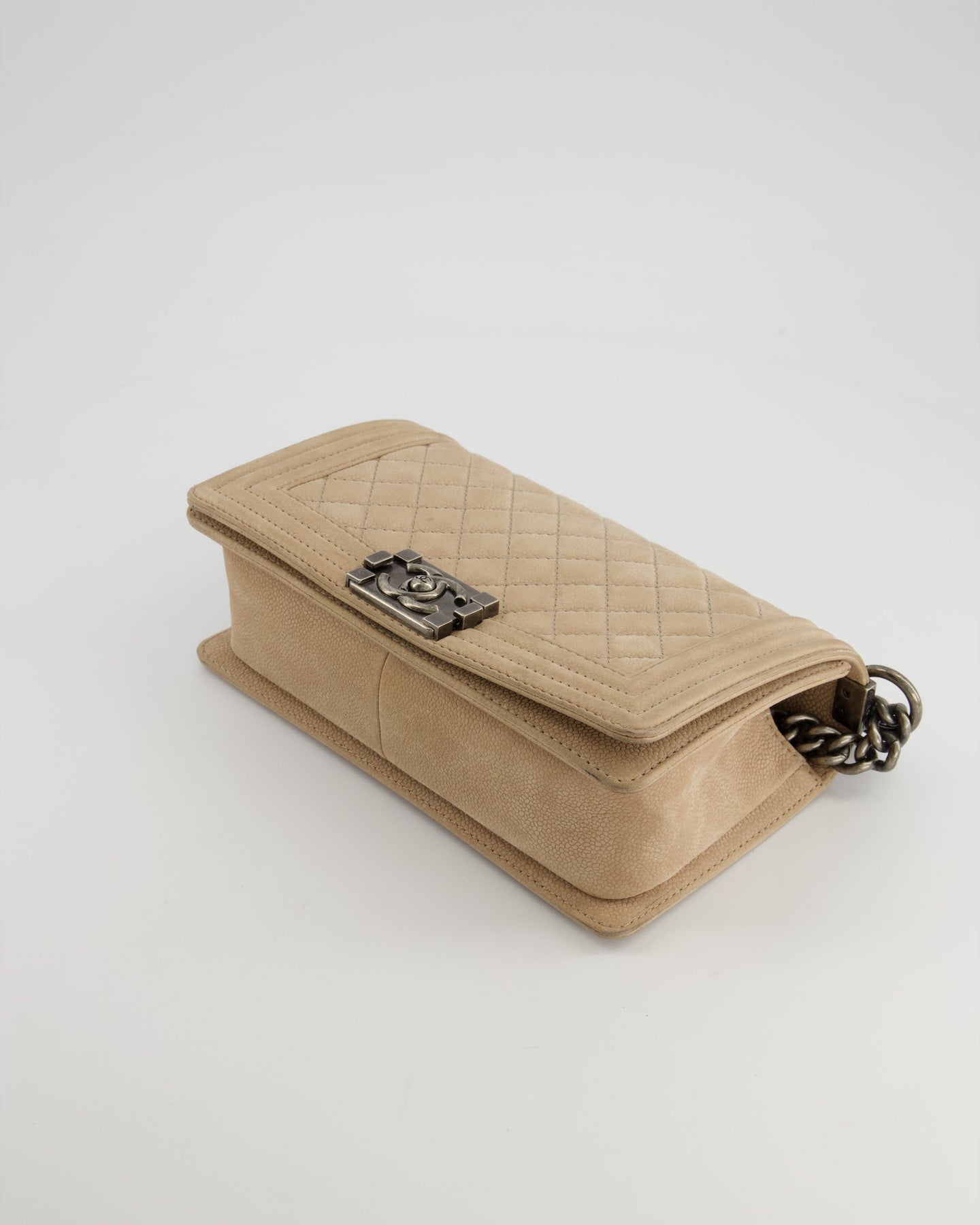 Chanel Medium Beige Boy Bag in Nubuck Leather with Ruthenium Hardware
