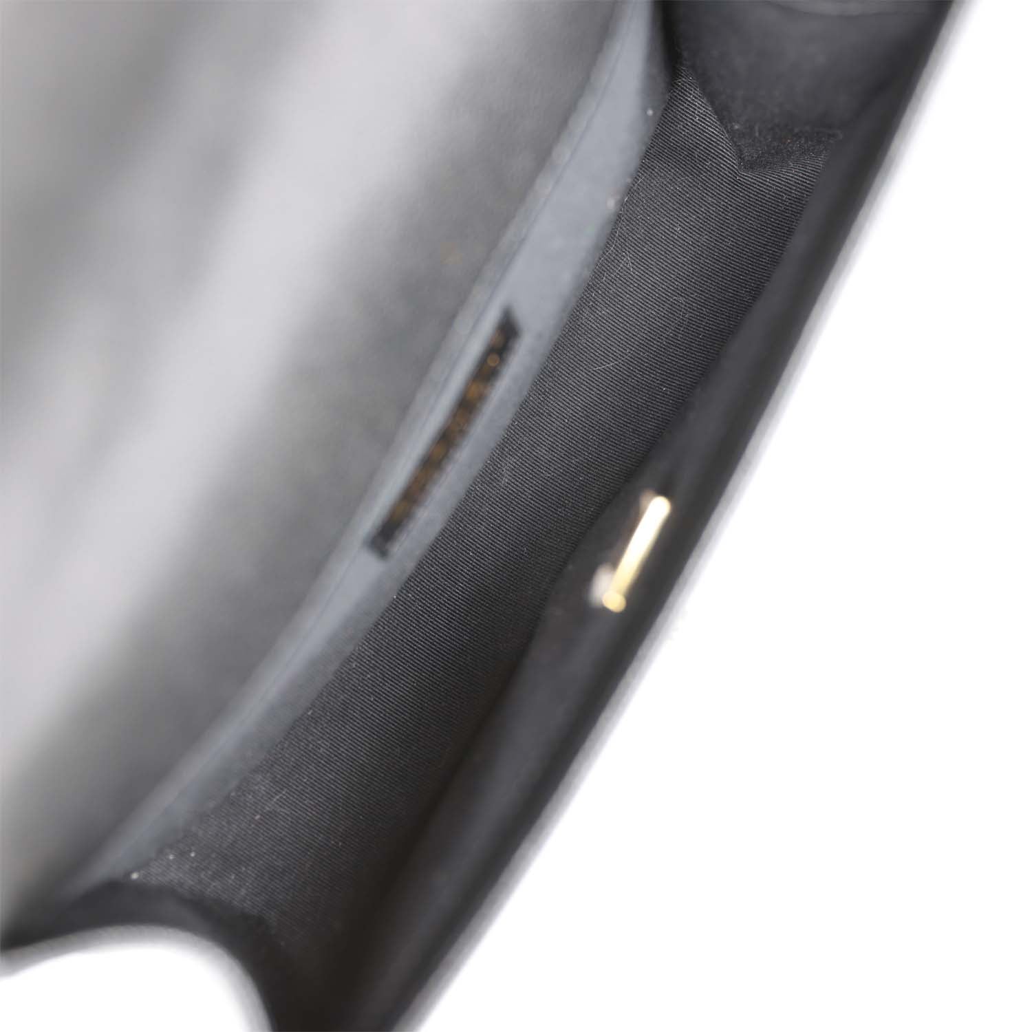 The interior is lined in black fabric with an open pocket on rear wall.