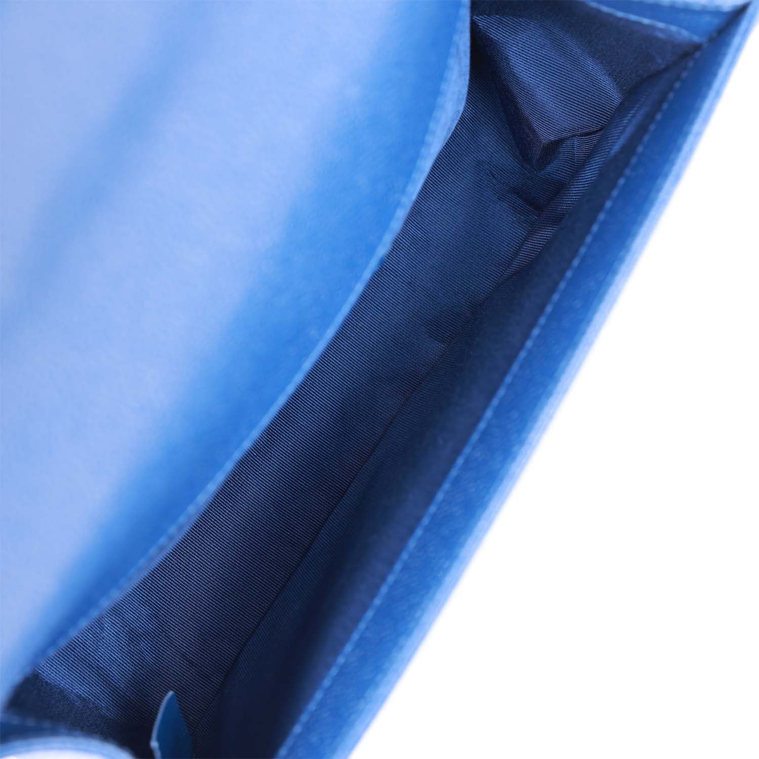The interior is lined in blue canvas with an open pocket on rear wall.