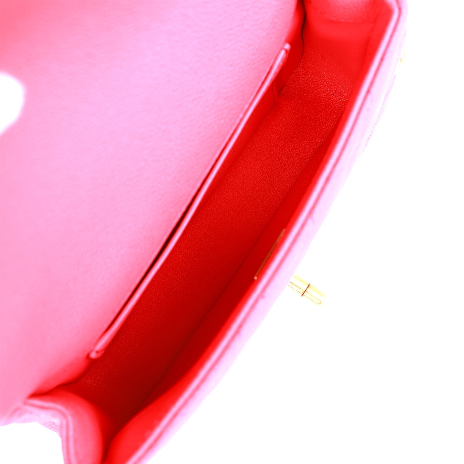 The interior is lined in pink leather and features one slip pocket on the rear wall.
