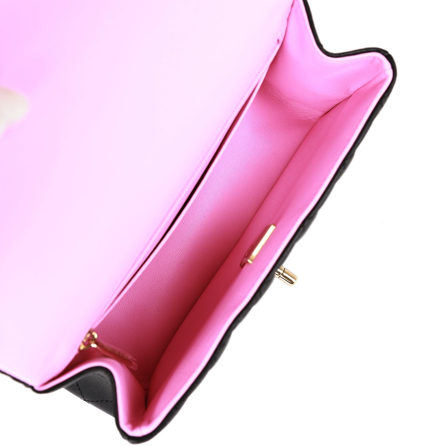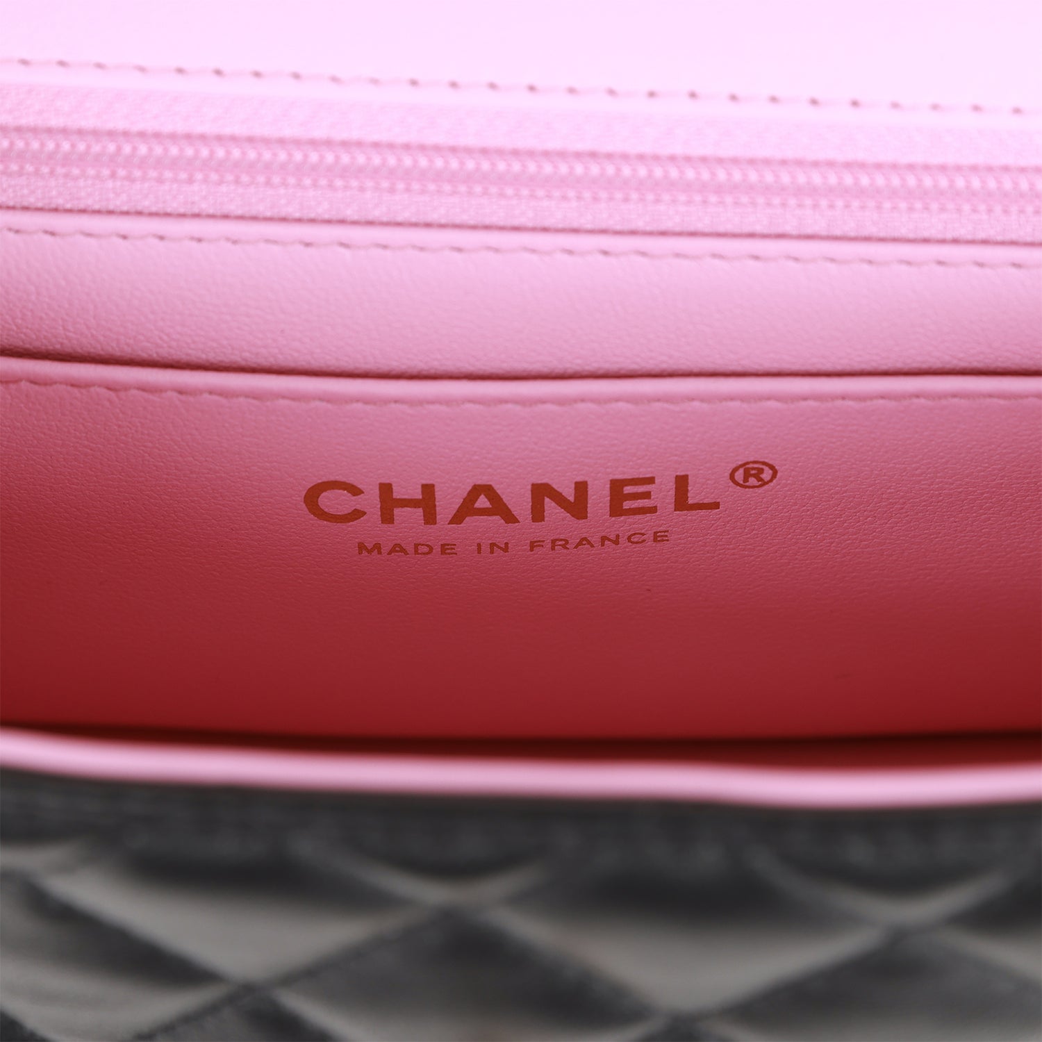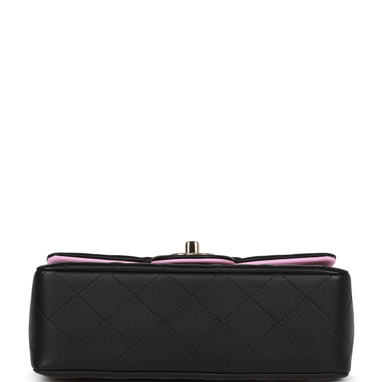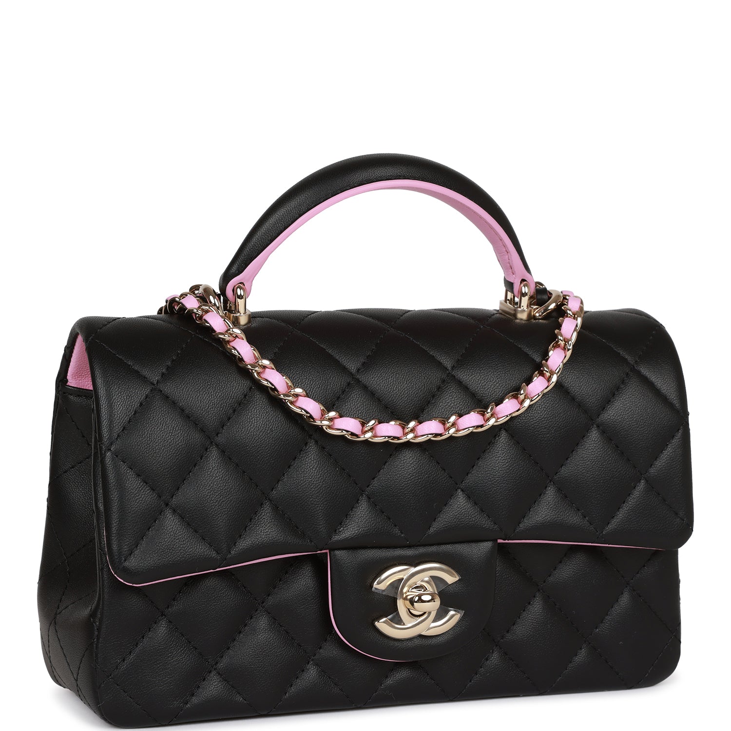 Top Quality Chanel Mini Rectangular Flap Bag with Top Handle Black and Pink Lambskin Light Gold Hardware