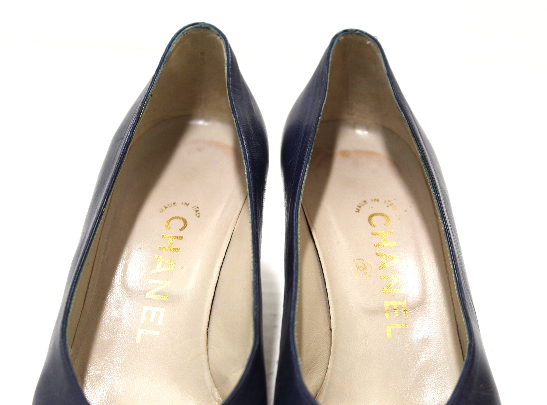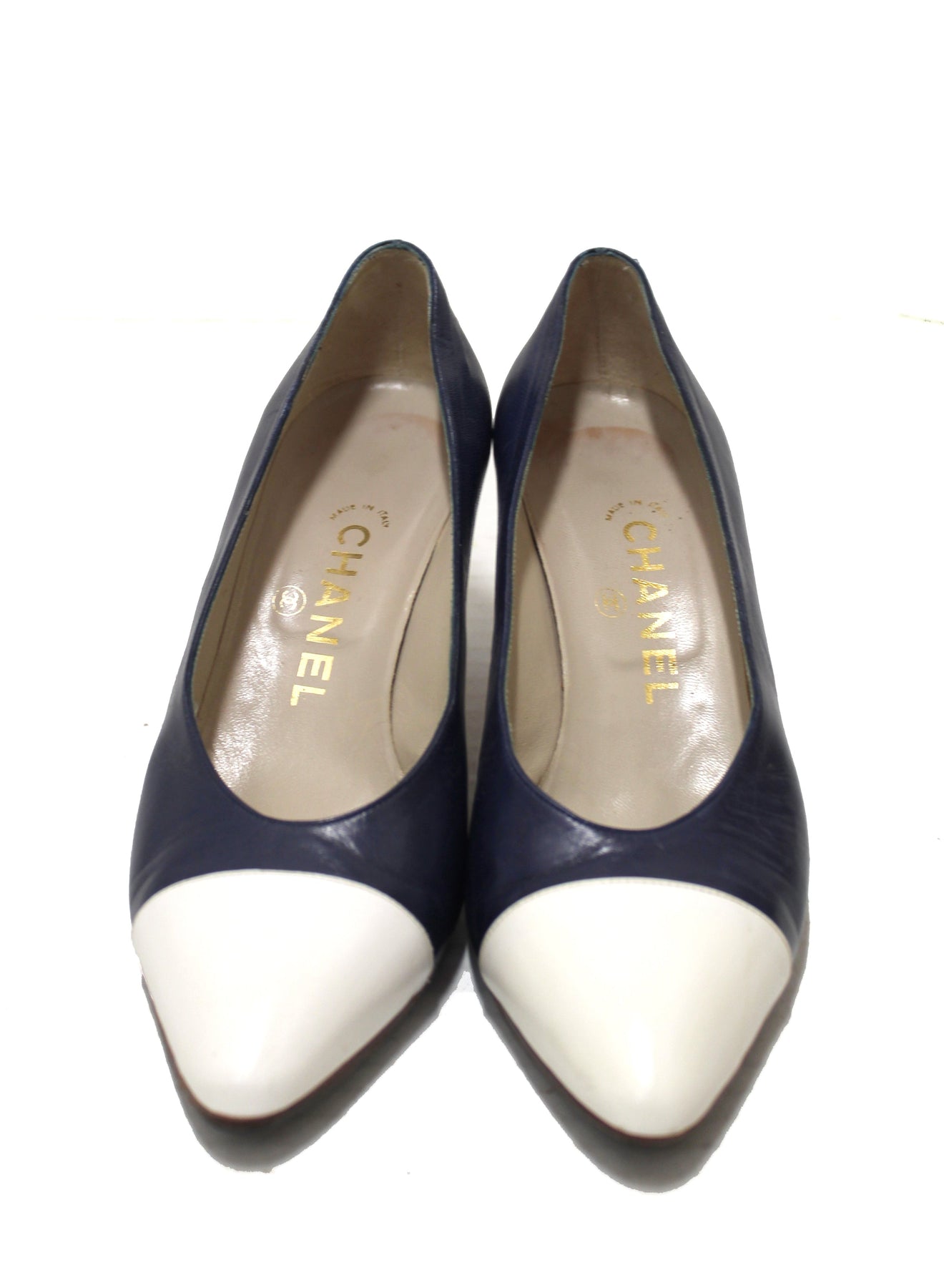 Chanel Navy and White Leather Pointed Heel size 35.5