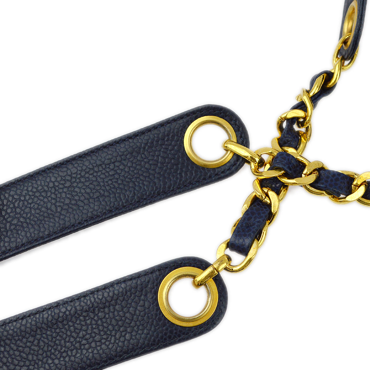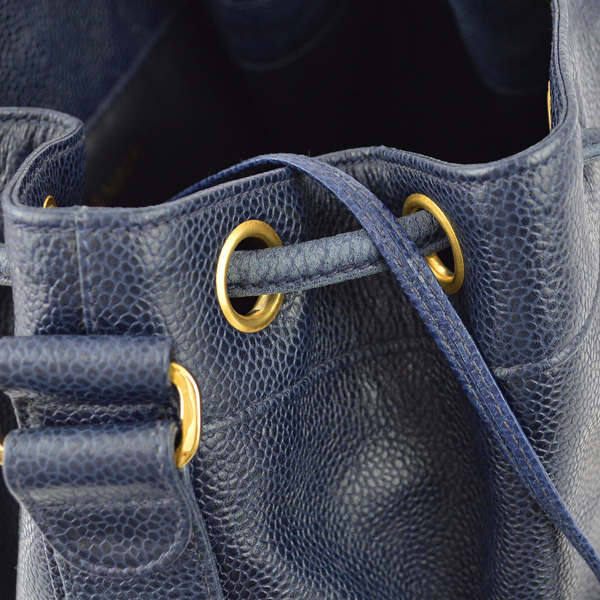 Chanel Navy Caviar Triple CC Bucket Shoulder Bag Engraved / Number 33***** Pocket Outside -