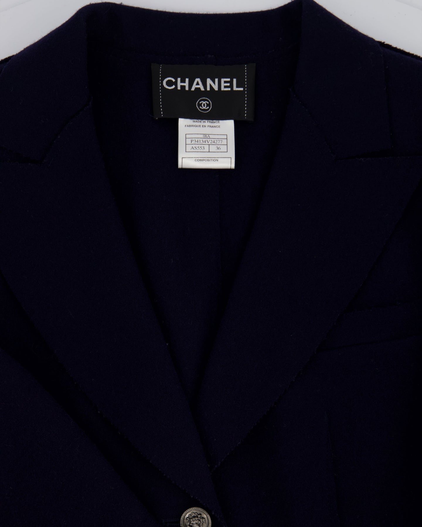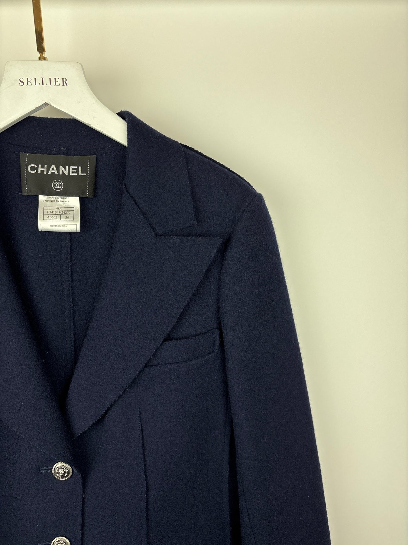 Chanel Navy Wool Blazer Jacket with Silver CC Button Detail FR 36 (UK 8)
