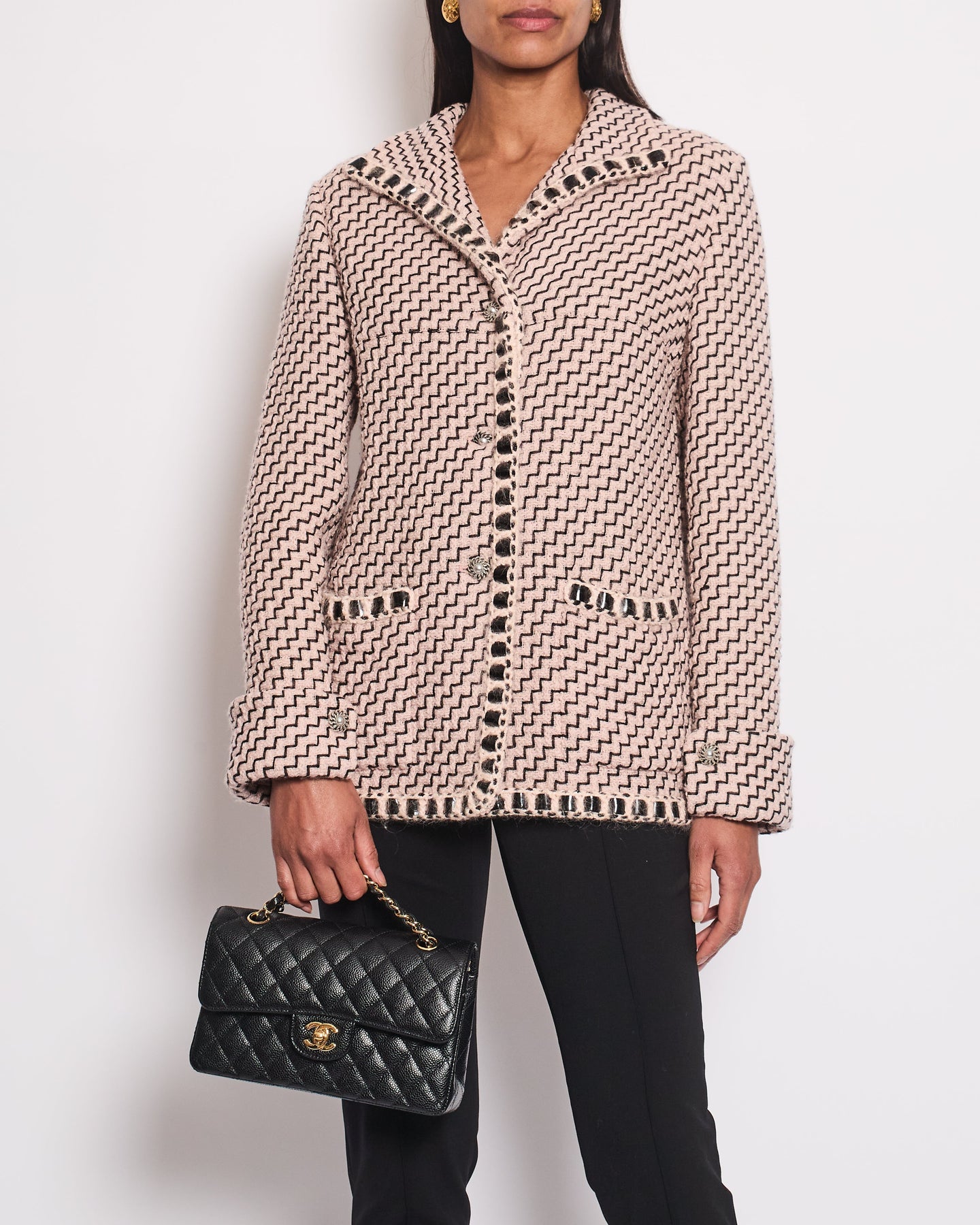 • The jacket fastens with buttons at the front