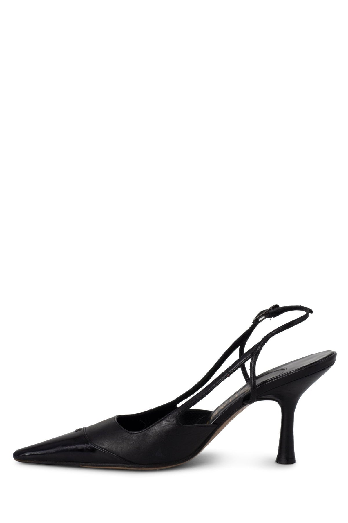 Top Quality Chanel Patent Leather CC Logo Cap Toe Sling Back Shoes Black