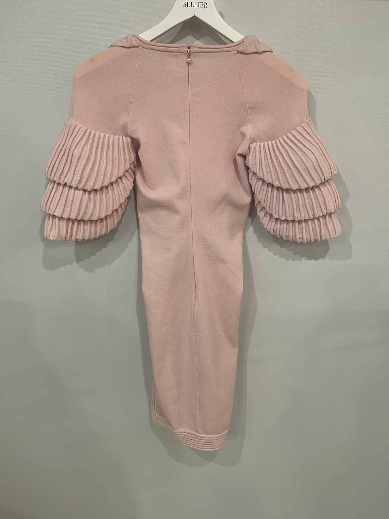 Chanel Pink Paris Moscow Short Sleeve Ruffle Mini Dress with Pearl Zipper Logo Size FR 34 (UK 6)