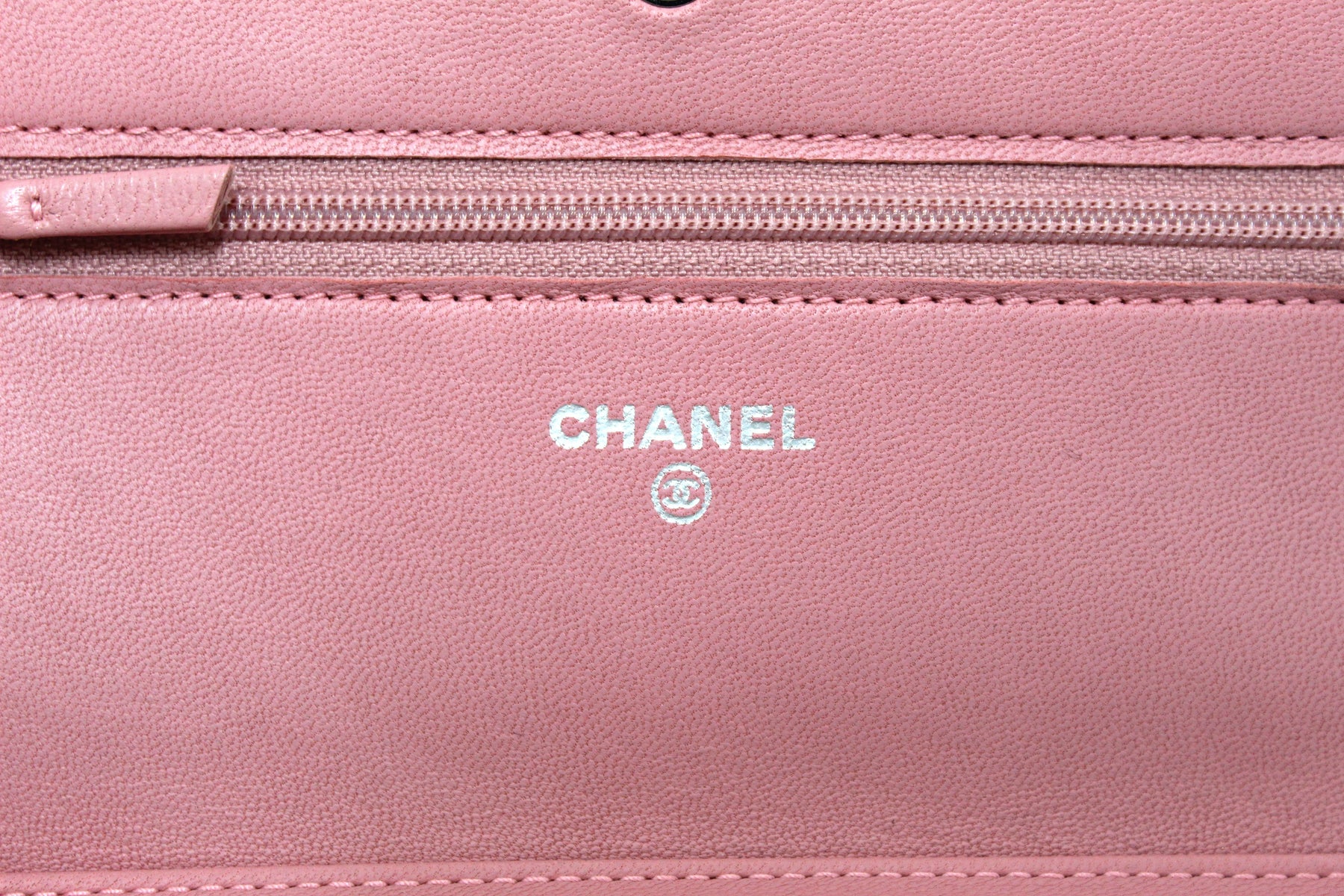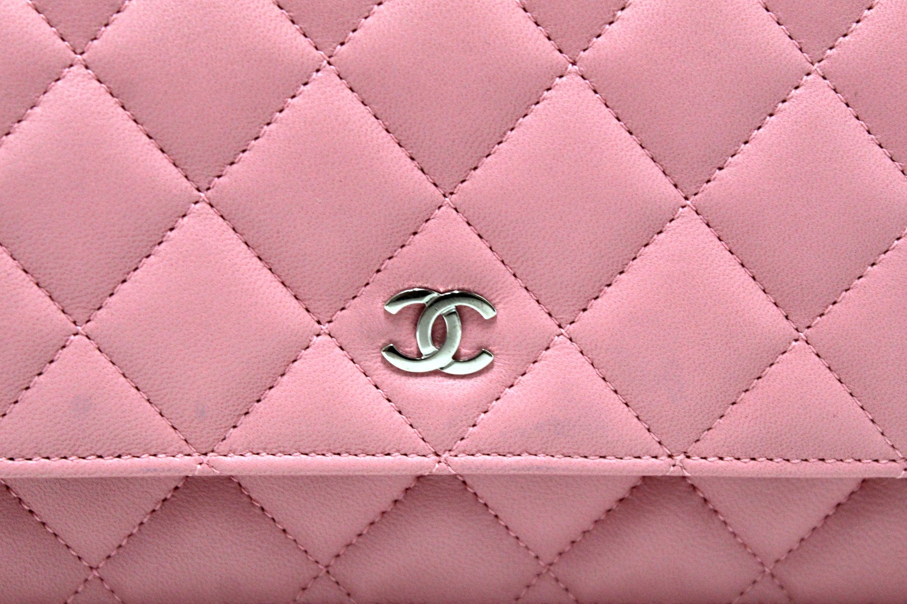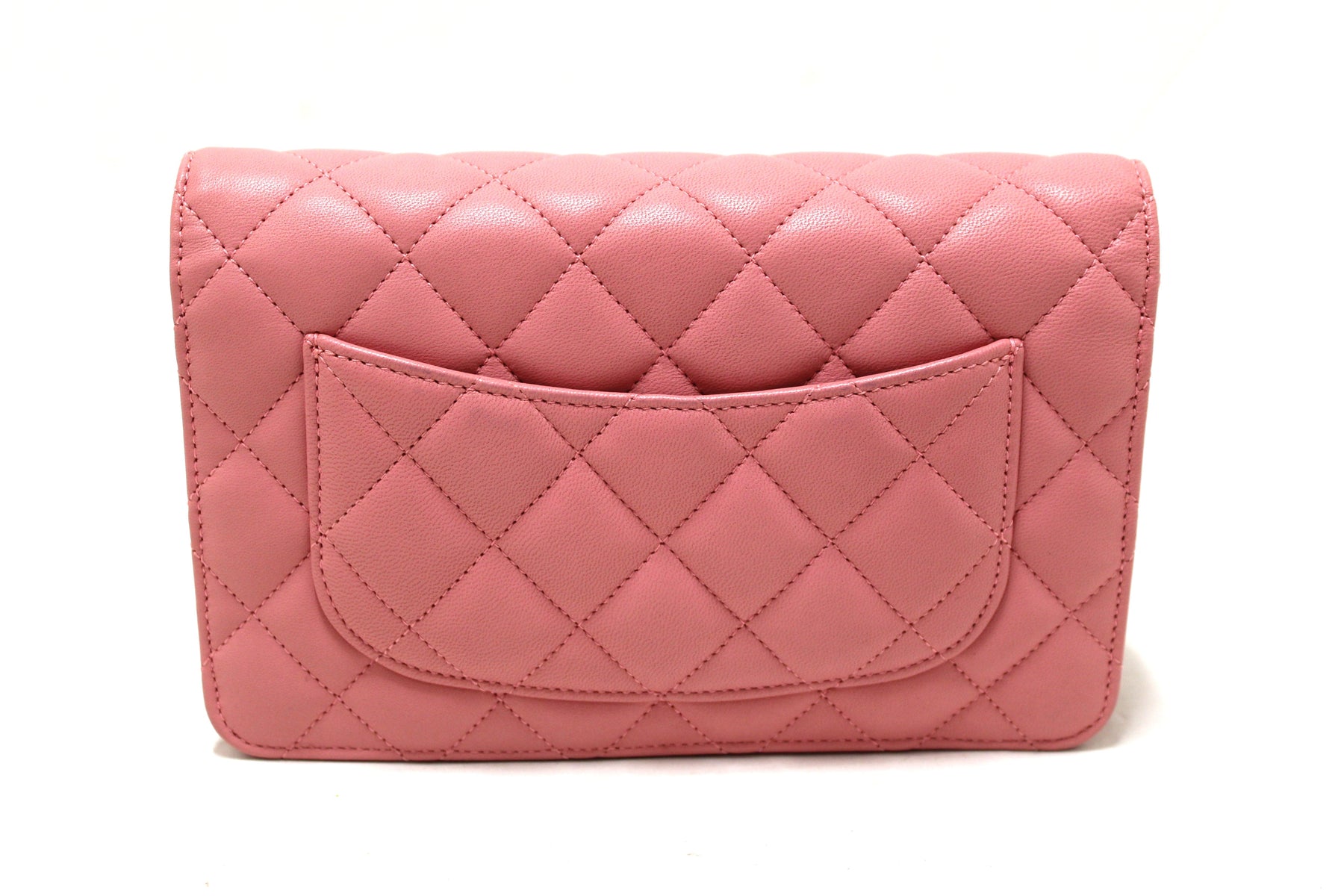 Chanel Pink Quilted Lambskin Leather Wallet On Chain/Clutch Bag