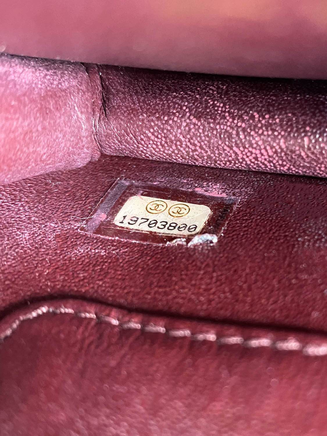 Chanel Mini Square Flap Bag or . This Chanel bag is in black quilted leather with gold tone hardware, front CC logo closure, one exterior pocket, two interior slip pockets and a burgundy leather interior to compliment the exterior.