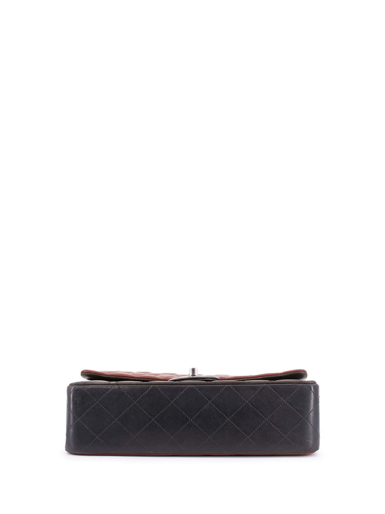 Chanel Tri-Color Medium Double Flap Bag or . This Paris Edinburgh double flap bag is crafted of quilted lambskin leather in burgundy, navy blue and olive green with ruthenium hardware. The bag features one rear slip pocket, ruthenium chain link leather threaded shoulder straps, and ruthenium CC logo with turn lock closure. This opens to a send flap with zipped pocket and a black leather interior with patch pockets.