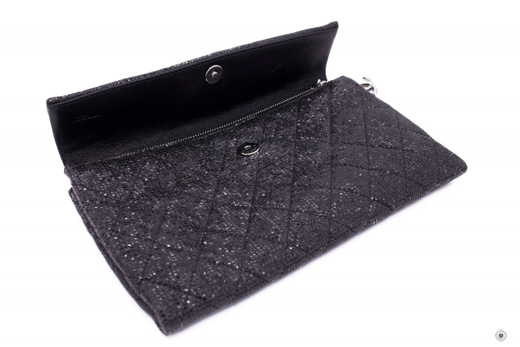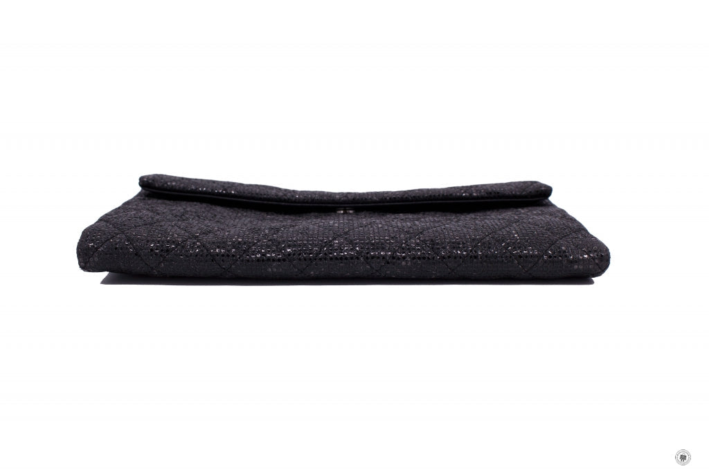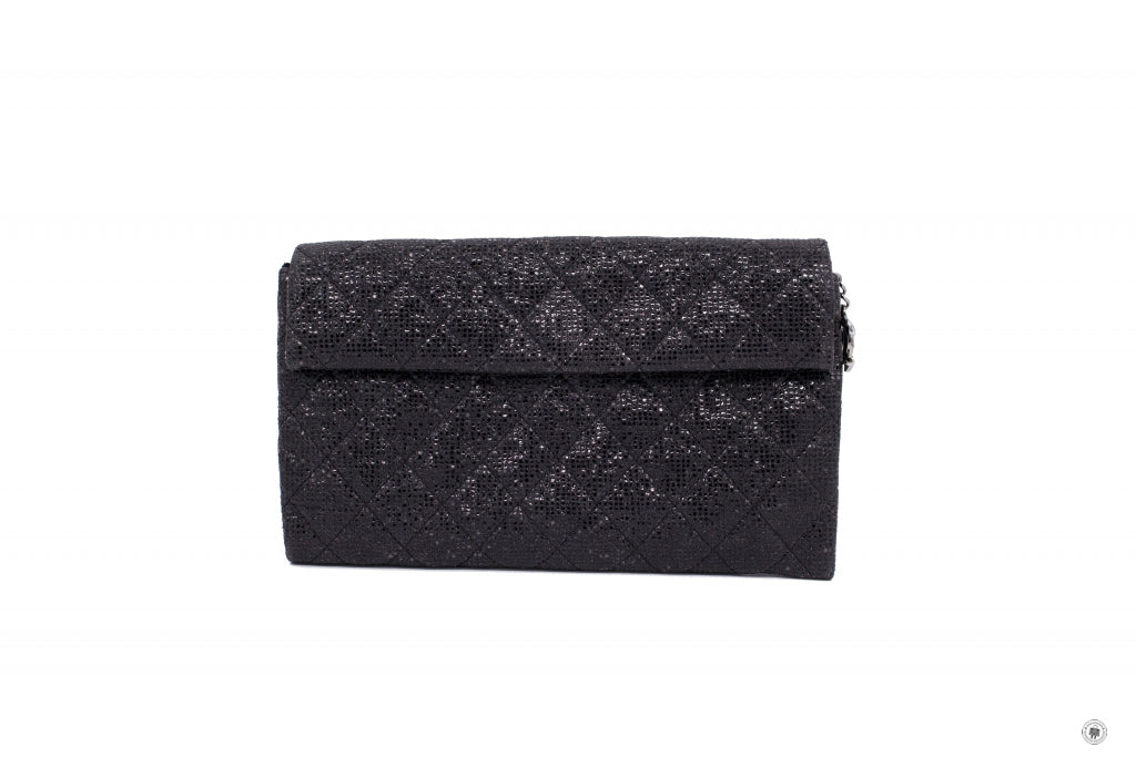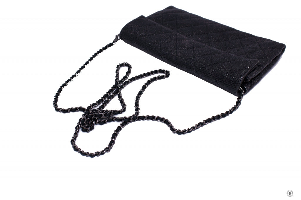 Chanel Quilted Lurex Fabric With Woven Chain And CC Logo Black Fabric Shoulder Bags Bkhw
