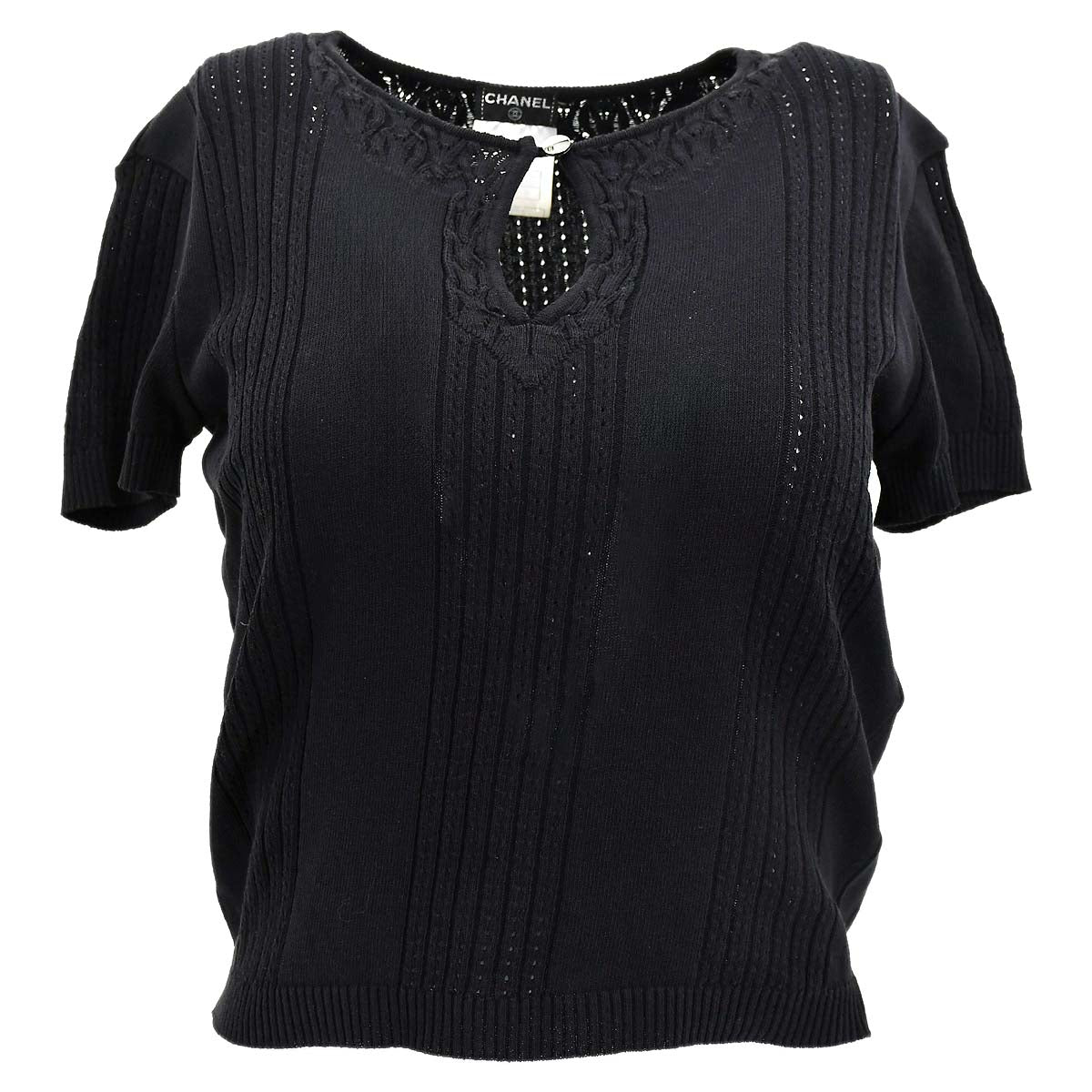 Chanel Short Sleeve Sweater Knit Tops Black 02P #38 Engraved / Number 02P/P19104V01082/94305 Size Notation size : #38