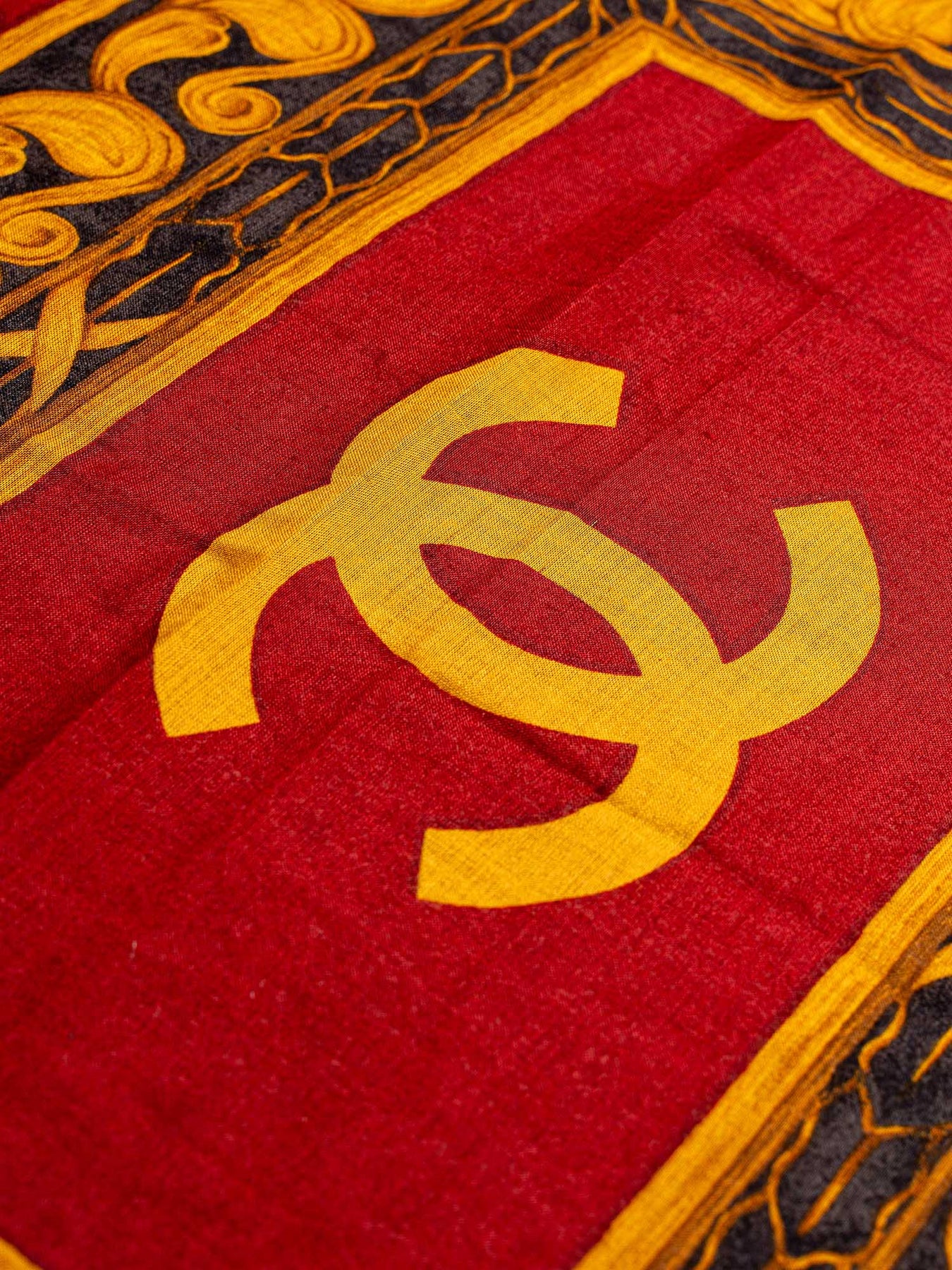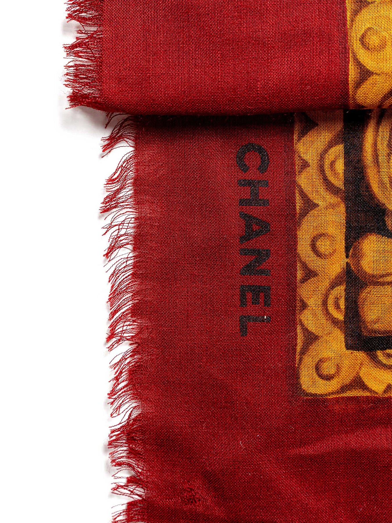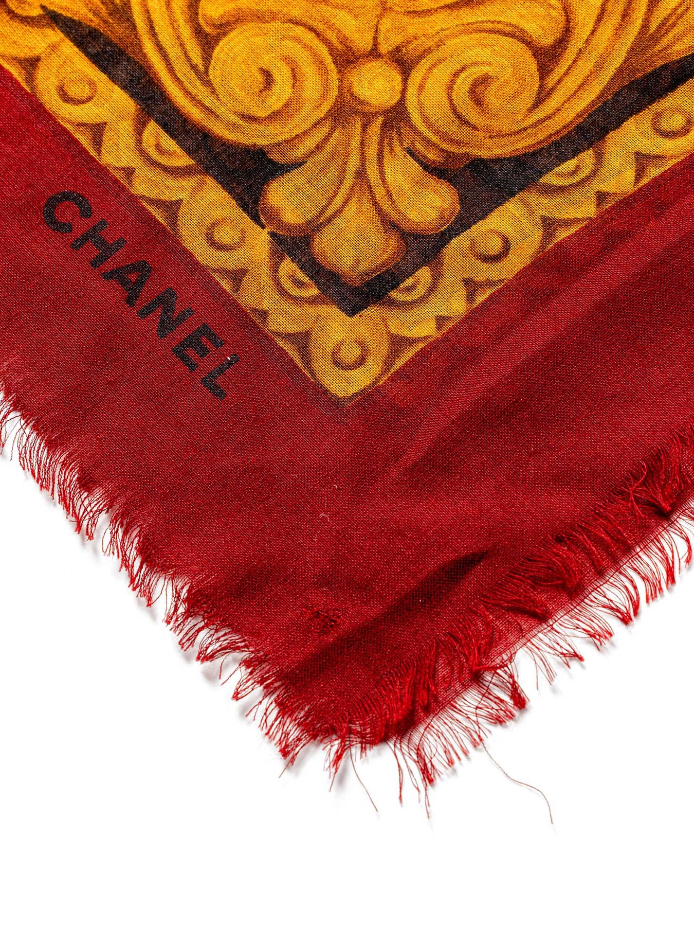 Chanel Cashmere CC Logo Scarf or . This Chanel Scarf is in a cashmere blend fabric, featuring a CC logo in red, black and gold colors.