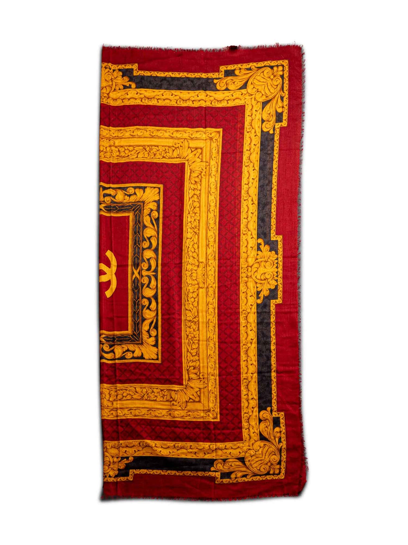 Chanel Cashmere CC Logo Scarf or . This Chanel Scarf is in a cashmere blend fabric, featuring a CC logo in red, black and gold colors.
