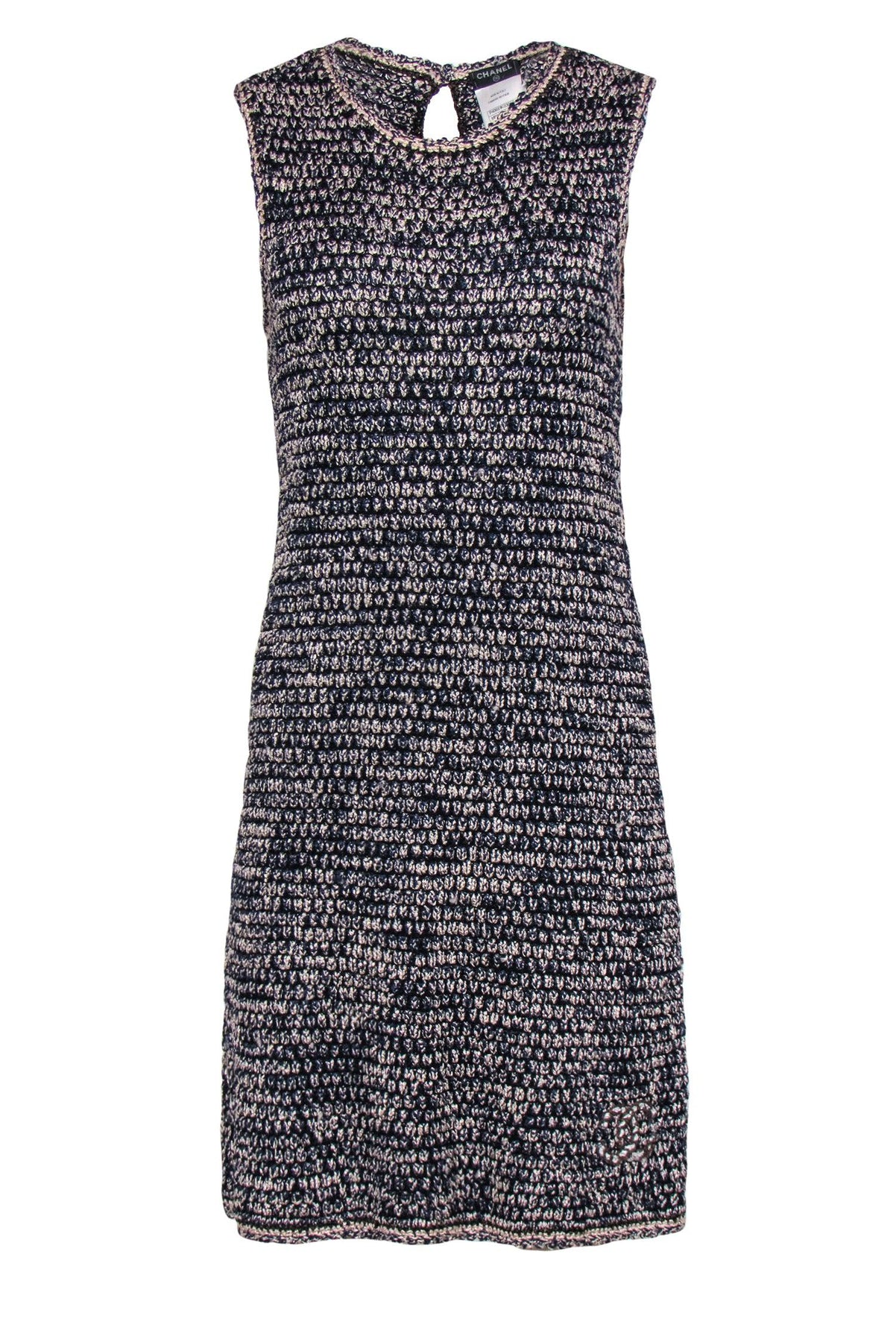 Top Quality Chanel - Pink & Blue Knit Marbled Tweed Sheath Dress Sz 10