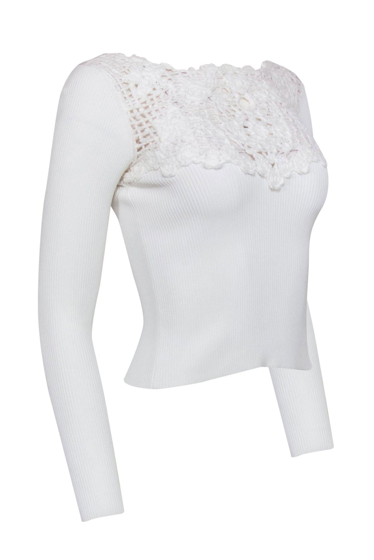 Go for a classic downtown look with some dreamy vibes when you don this Chanel top! Made with a soft ribbed material, this is a crochet-front beauty that is sure to complement all your favorite work pencil skirts or black weekend jeans.
