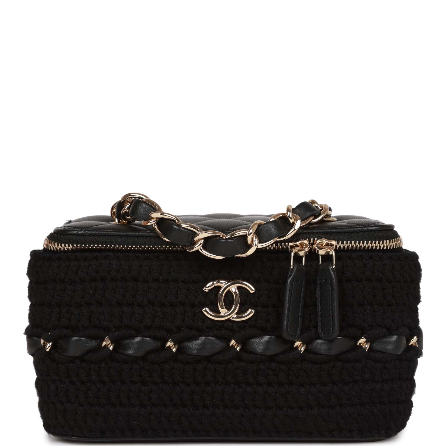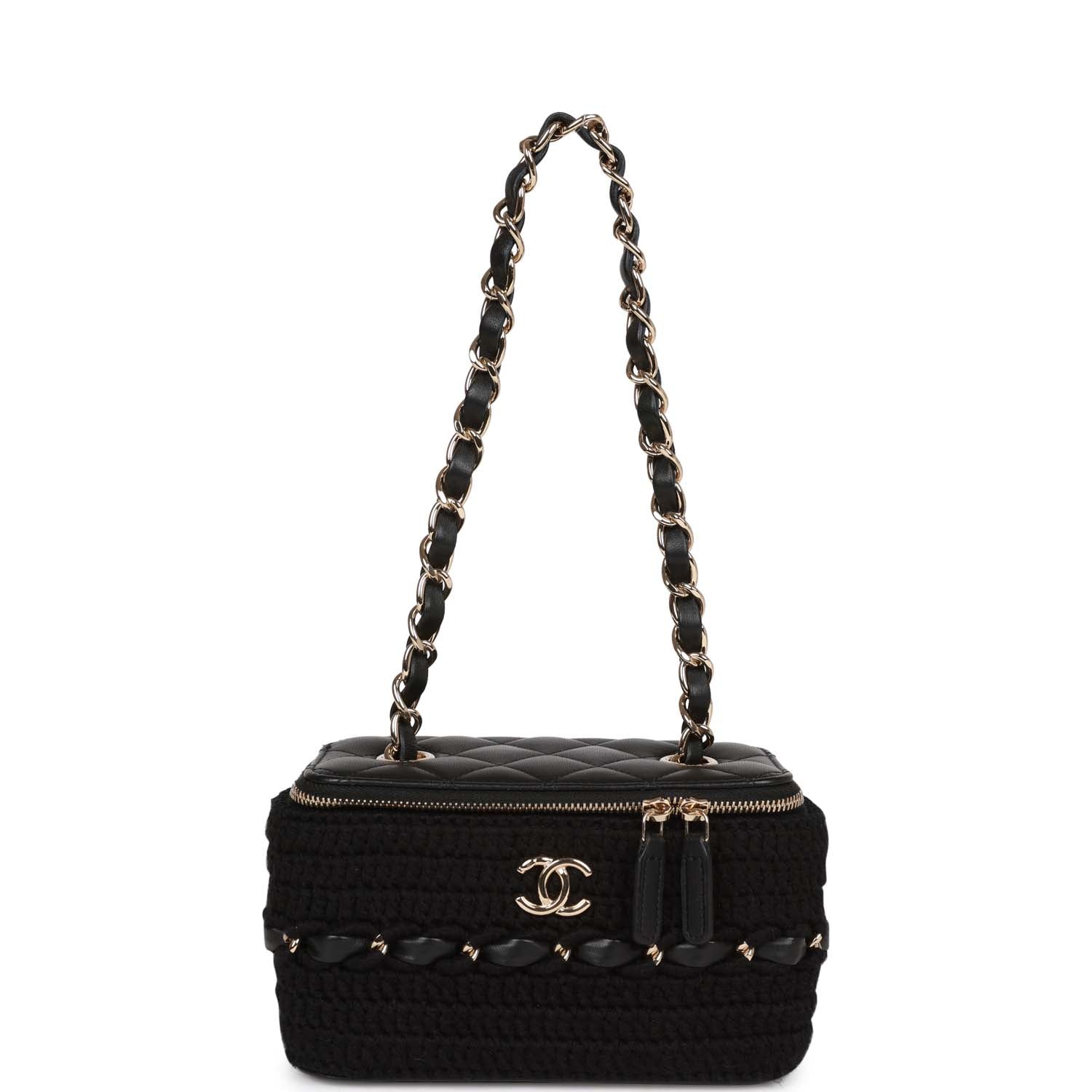 Top Quality Chanel Small Vanity Case Black Crochet and Lambskin Light Gold Hardware