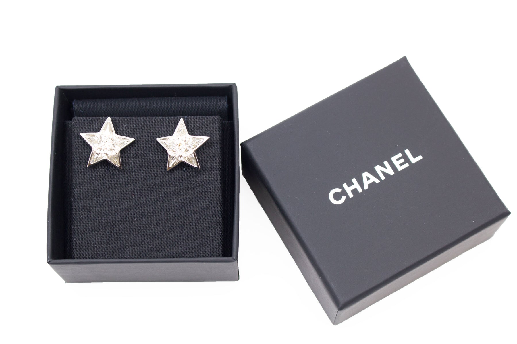 Chanel Star With CC Crystal Logo N0032 / Silver Metal 2CMX2CM Earrings