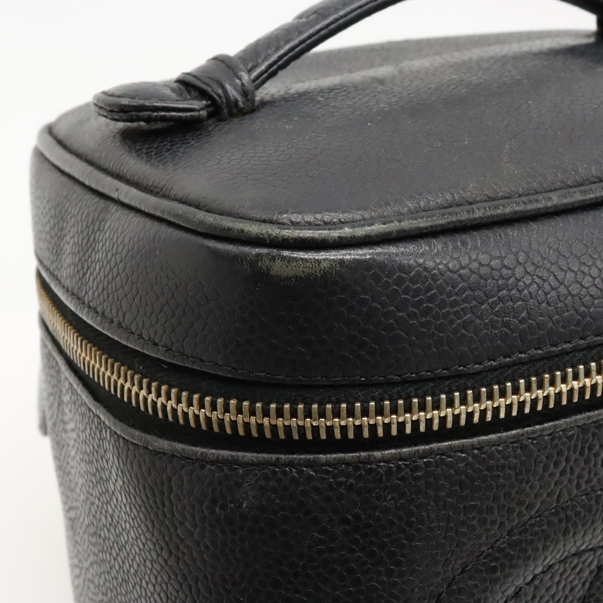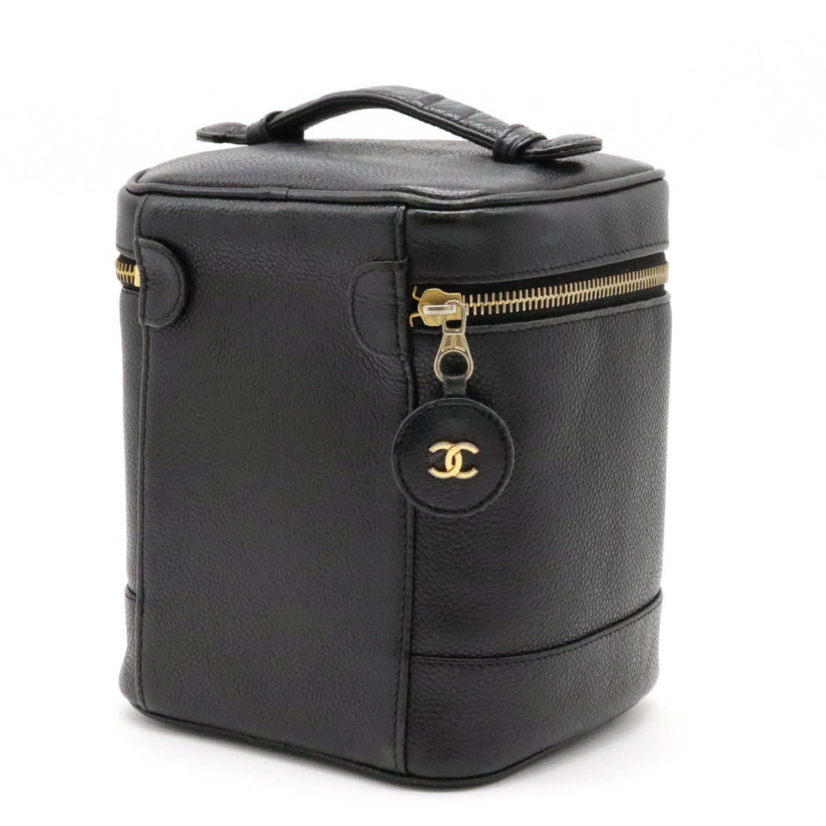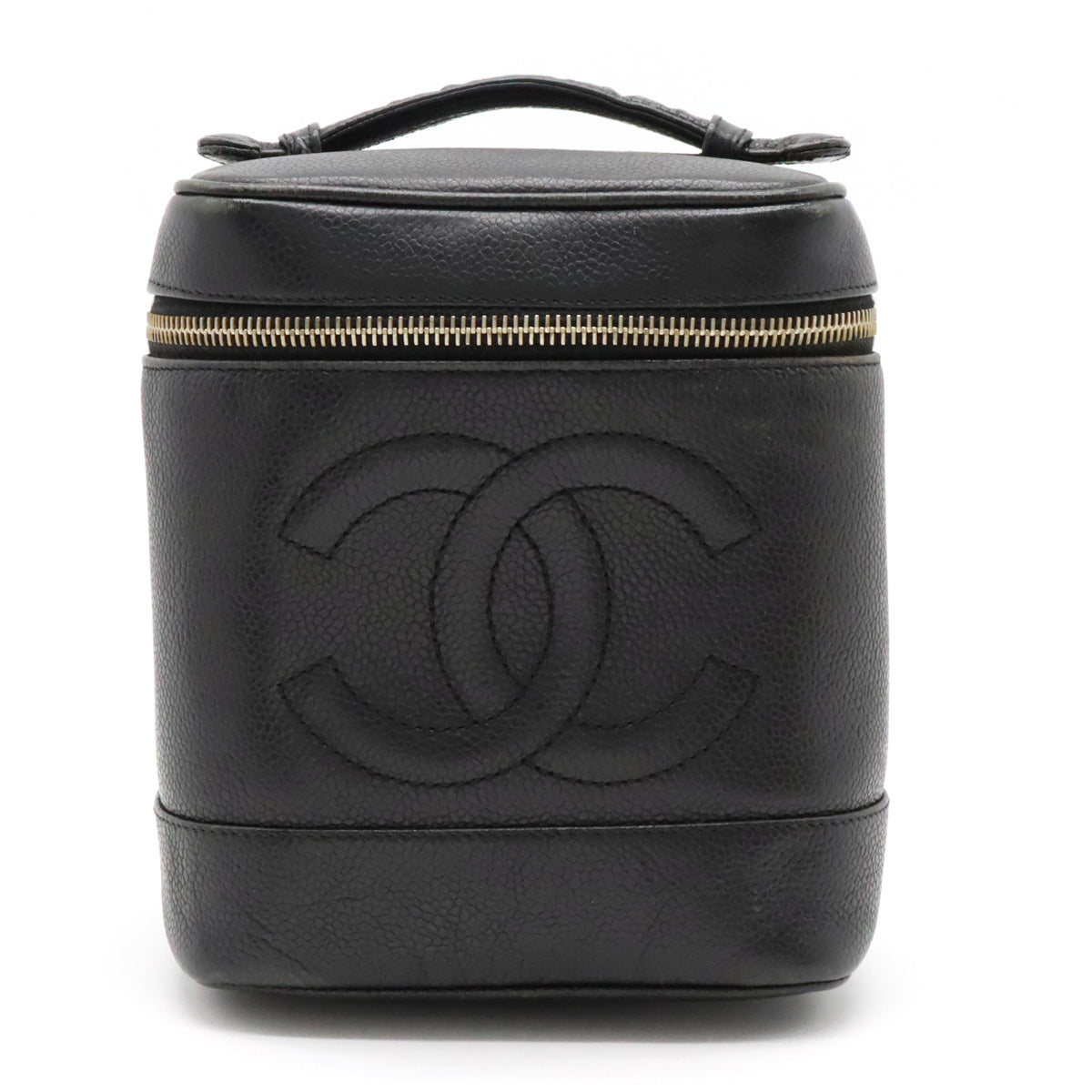 Top Quality Chanel Top Quality Chanel Caviar S Cocomark Vanity Bag Handbag Cosmetic Bag Cosmetic Leather Black Gold A01998