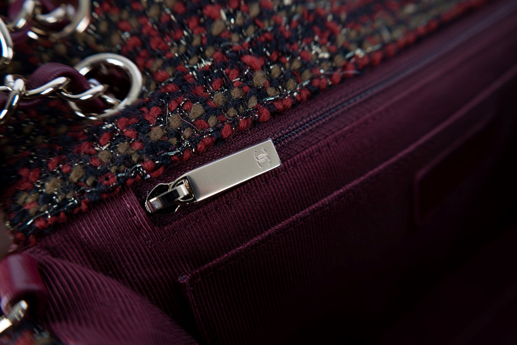 The chevron pattern on the bag features red and golden shimmers and the body features a multicolor tweed. Inclusions: Dust bag, box. NFT option available. Discover more.