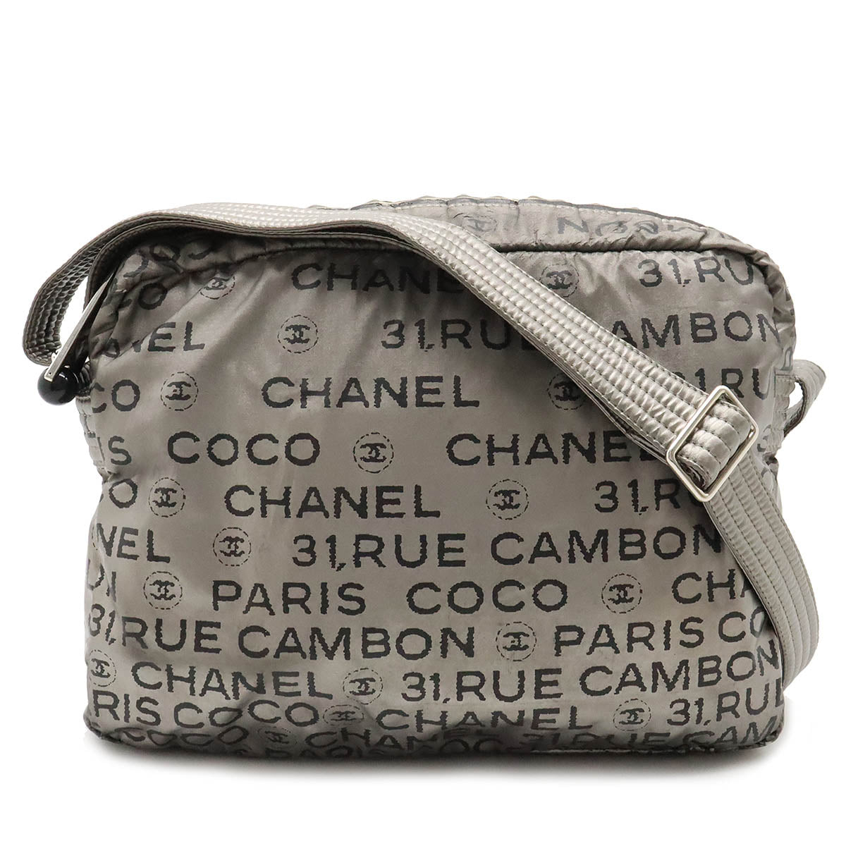 Top Quality Chanel Logo Shoulder Bag Pochette Nylon Silver Black Silver A46531