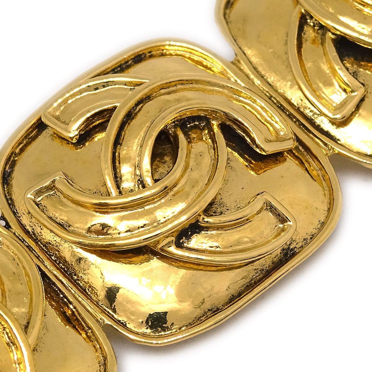Chanel Triple CC Brooch Pin Gold 94P Engraved / Number 94P Size(Inch) W 2.8 " x H 1.0 " Size(cm) W 7.1 x H 2.4 cm Color / Material Gold / Gold-plated Accessory - SKU Number 28777 Damage Exterior New Condition