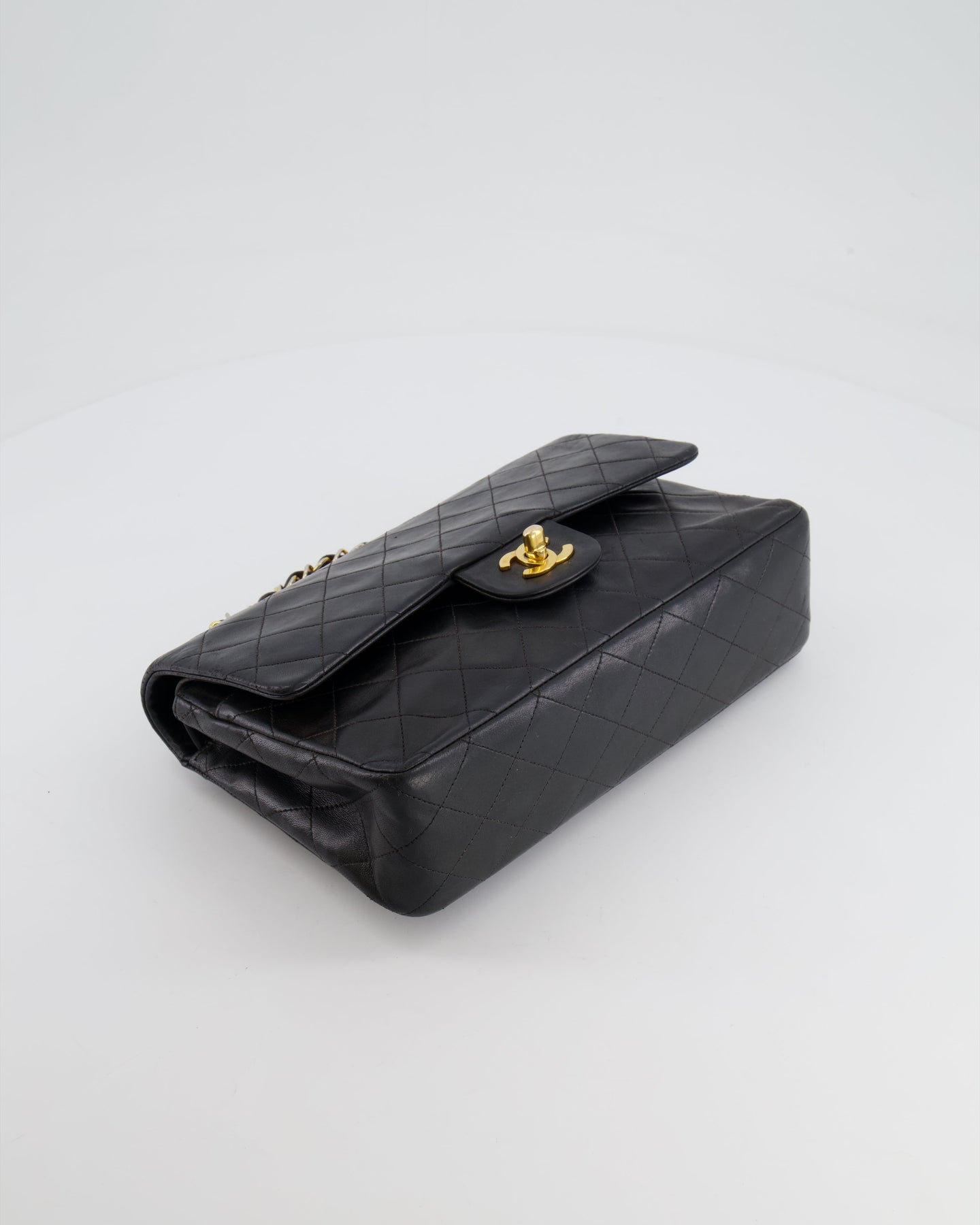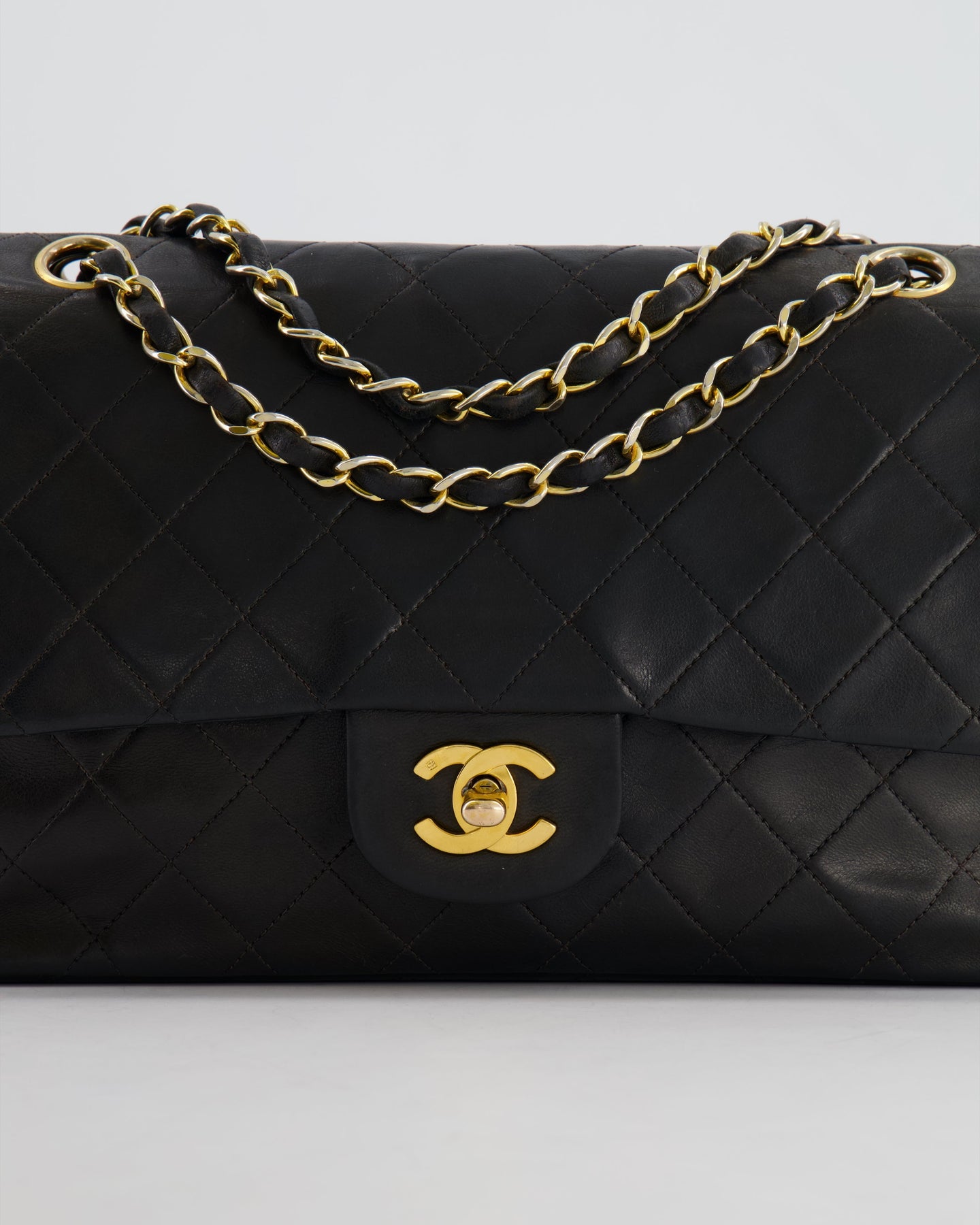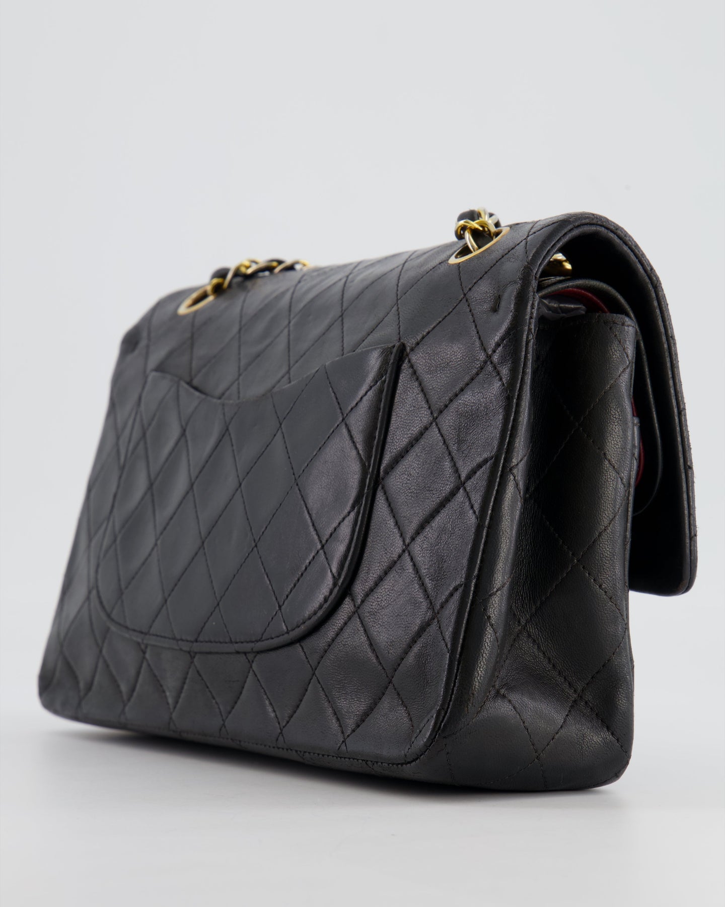 Chanel Vintage Black Medium Classic Double Flap Bag in Lambskin Leather with 24K Gold Hardware