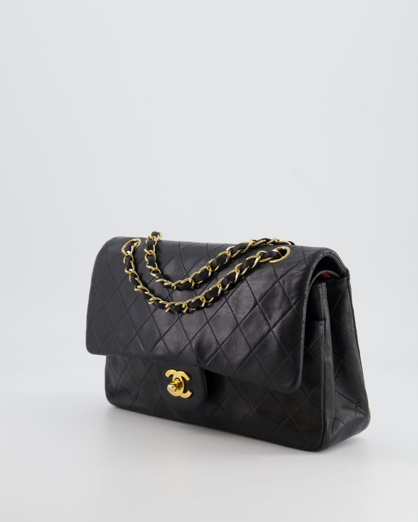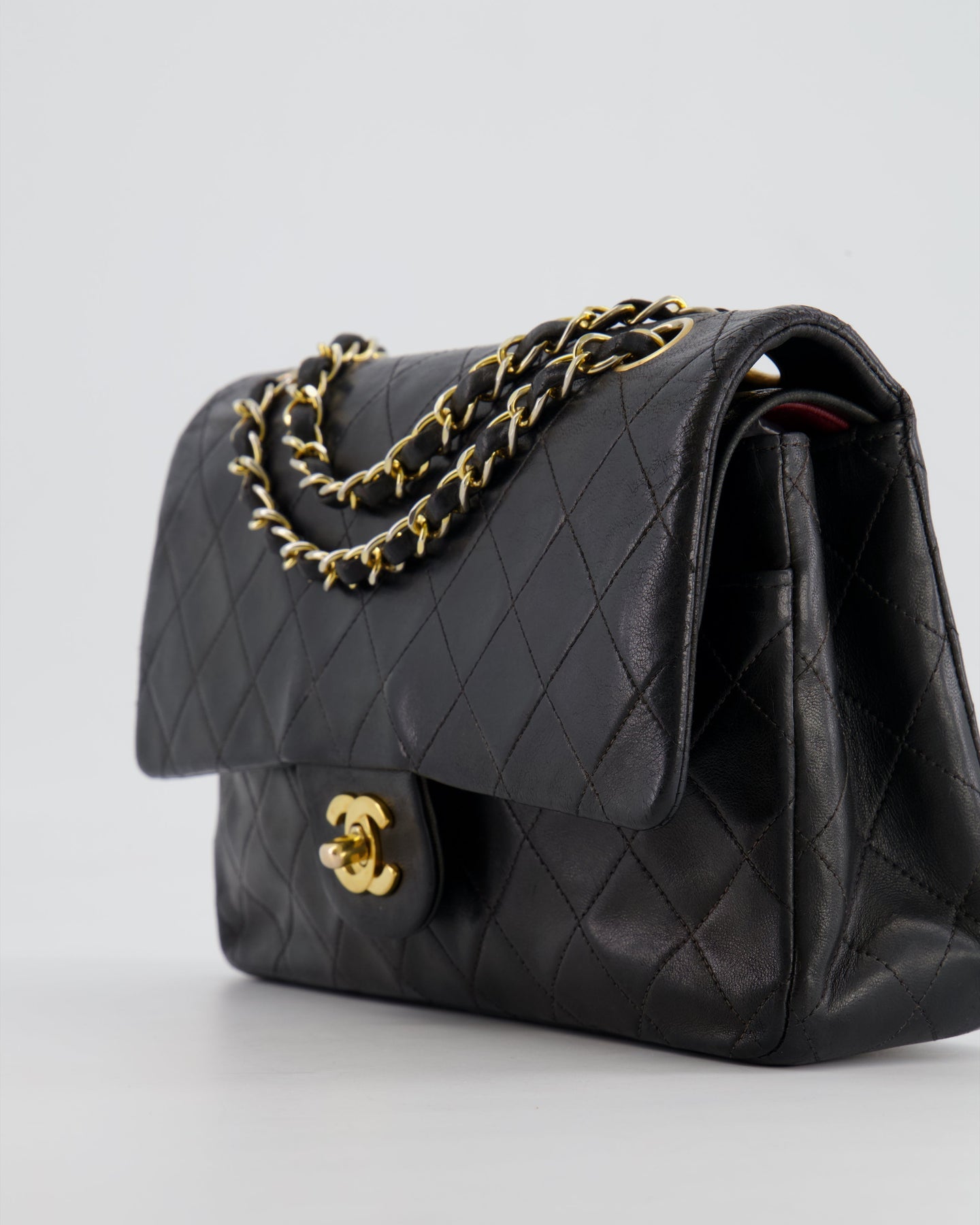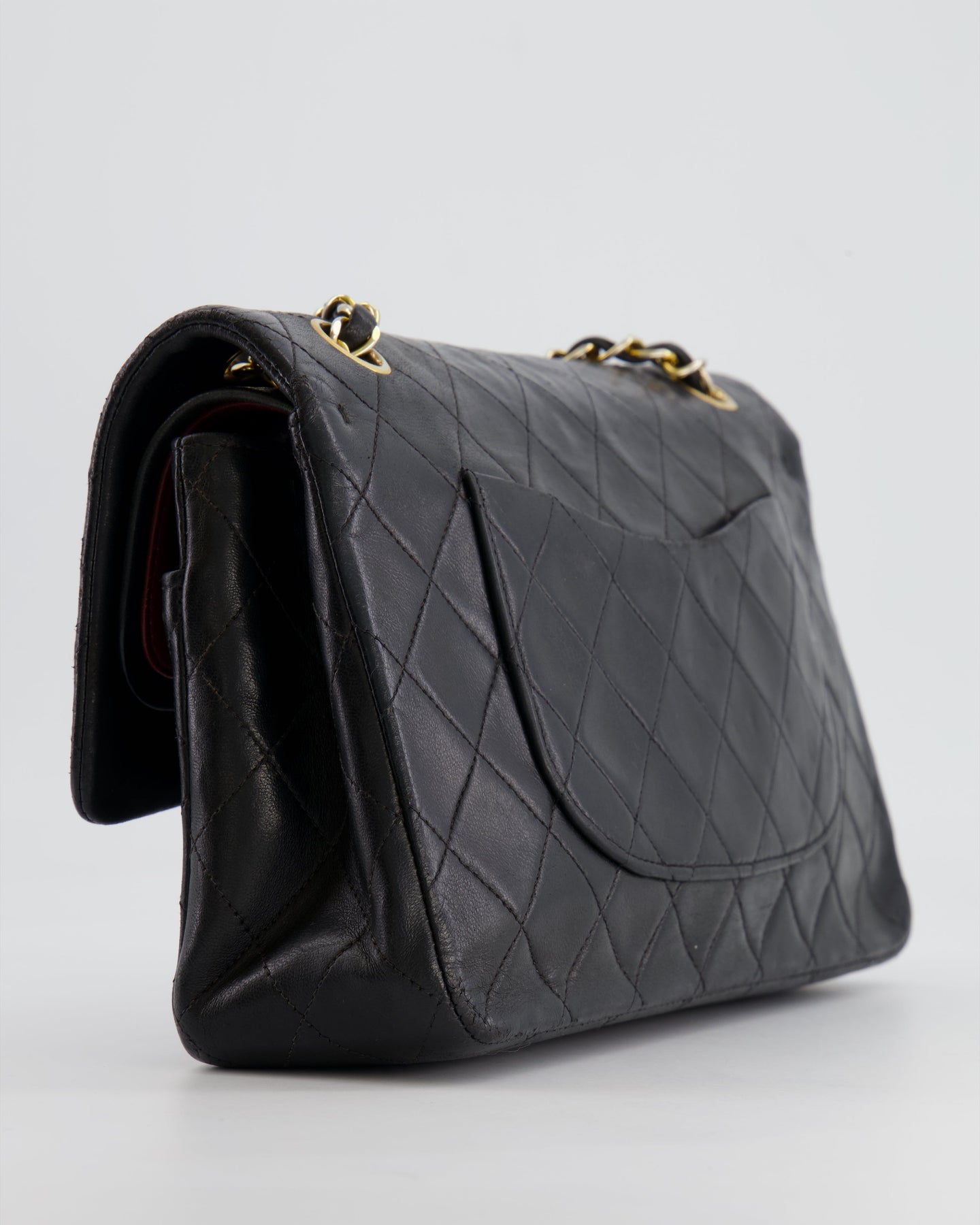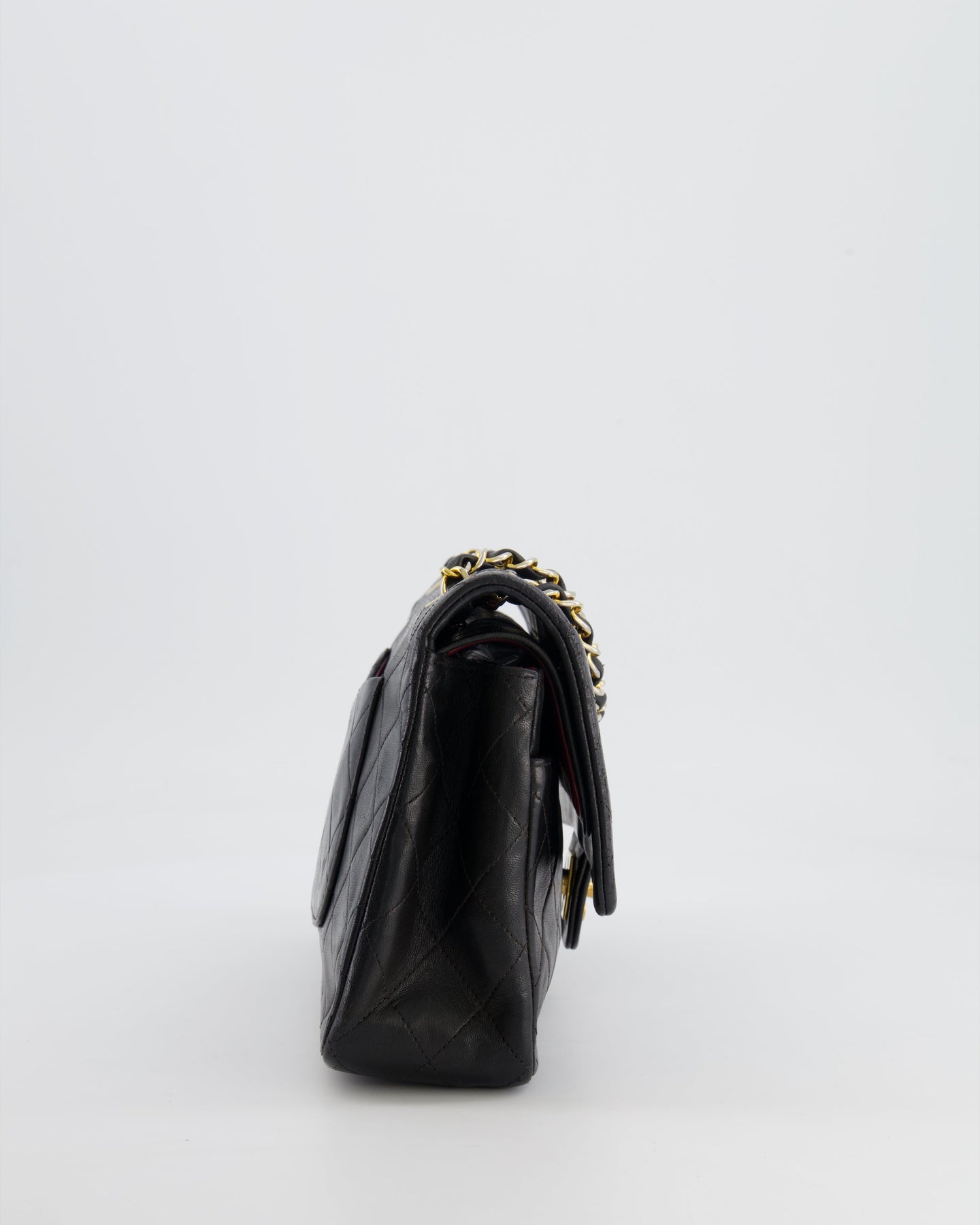Chanel Vintage Black Medium Classic Double Flap Bag in Lambskin Leather with 24K Gold Hardware