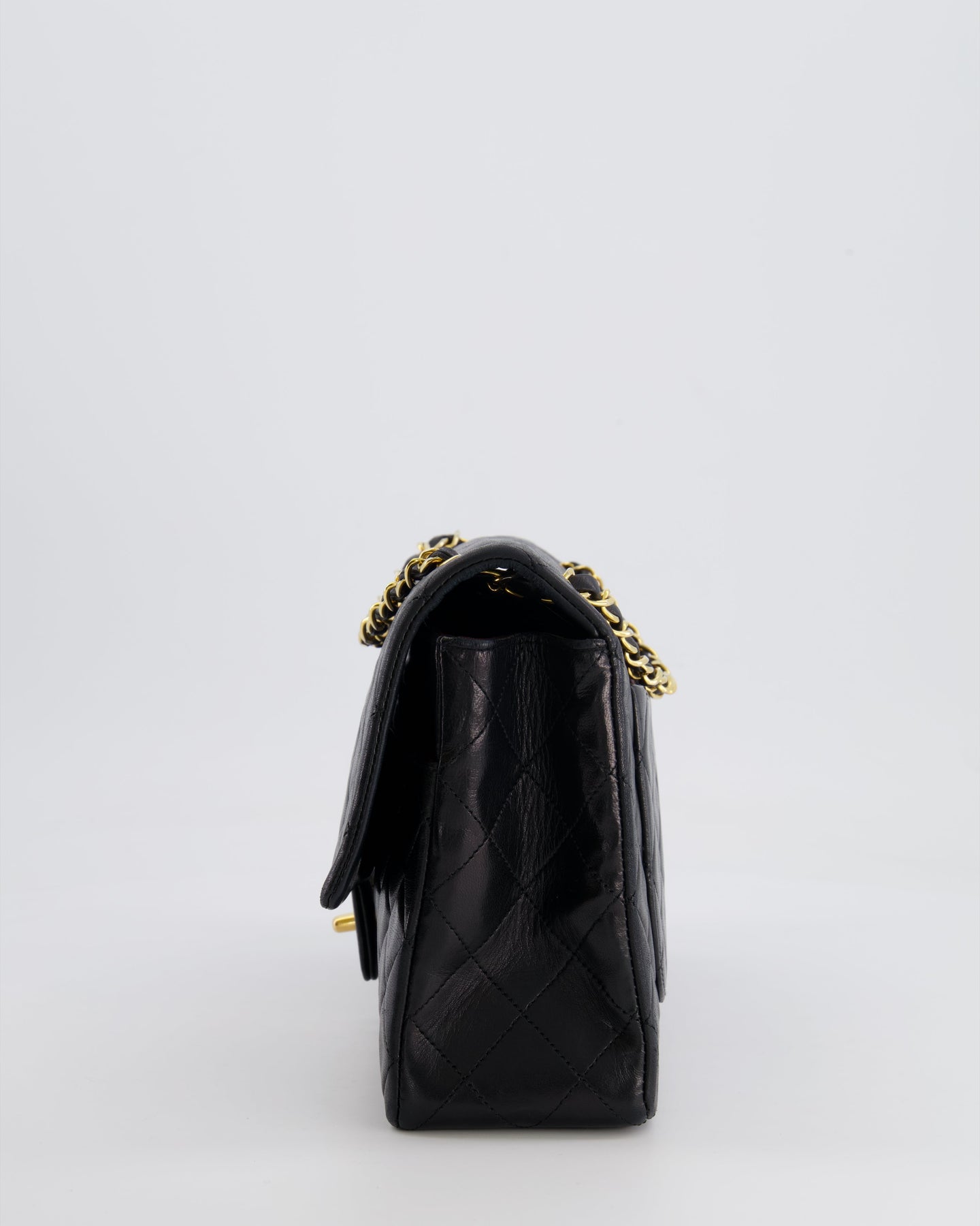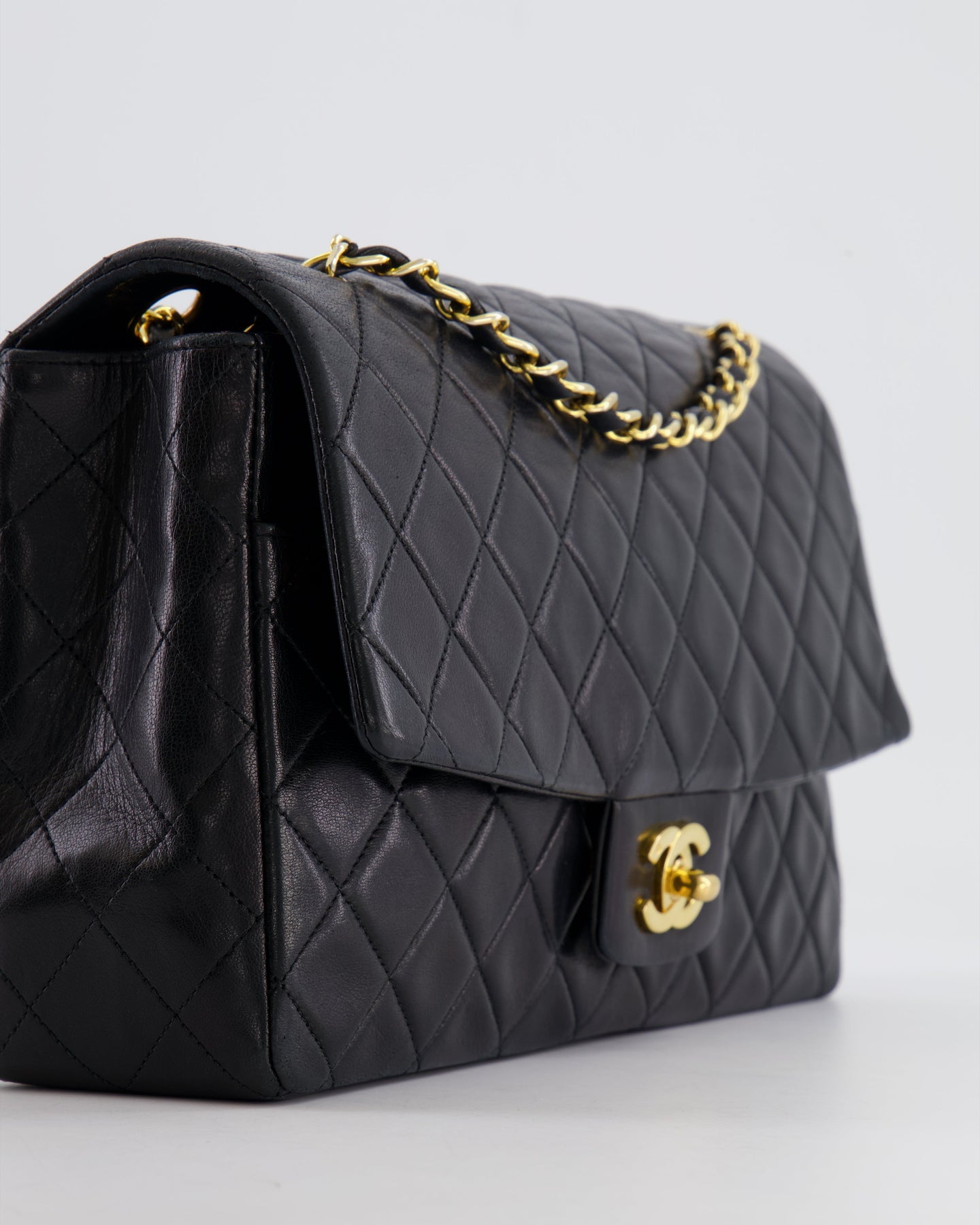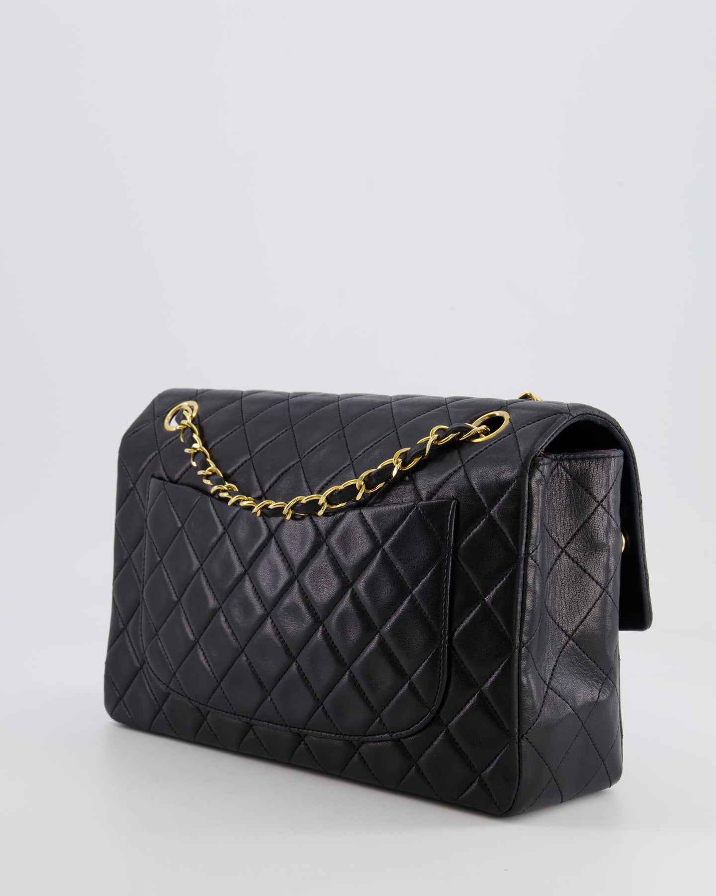 Chanel Vintage Black Medium Classic Single Flap Bag in Lambskin Leather with 24K Gold Hardware