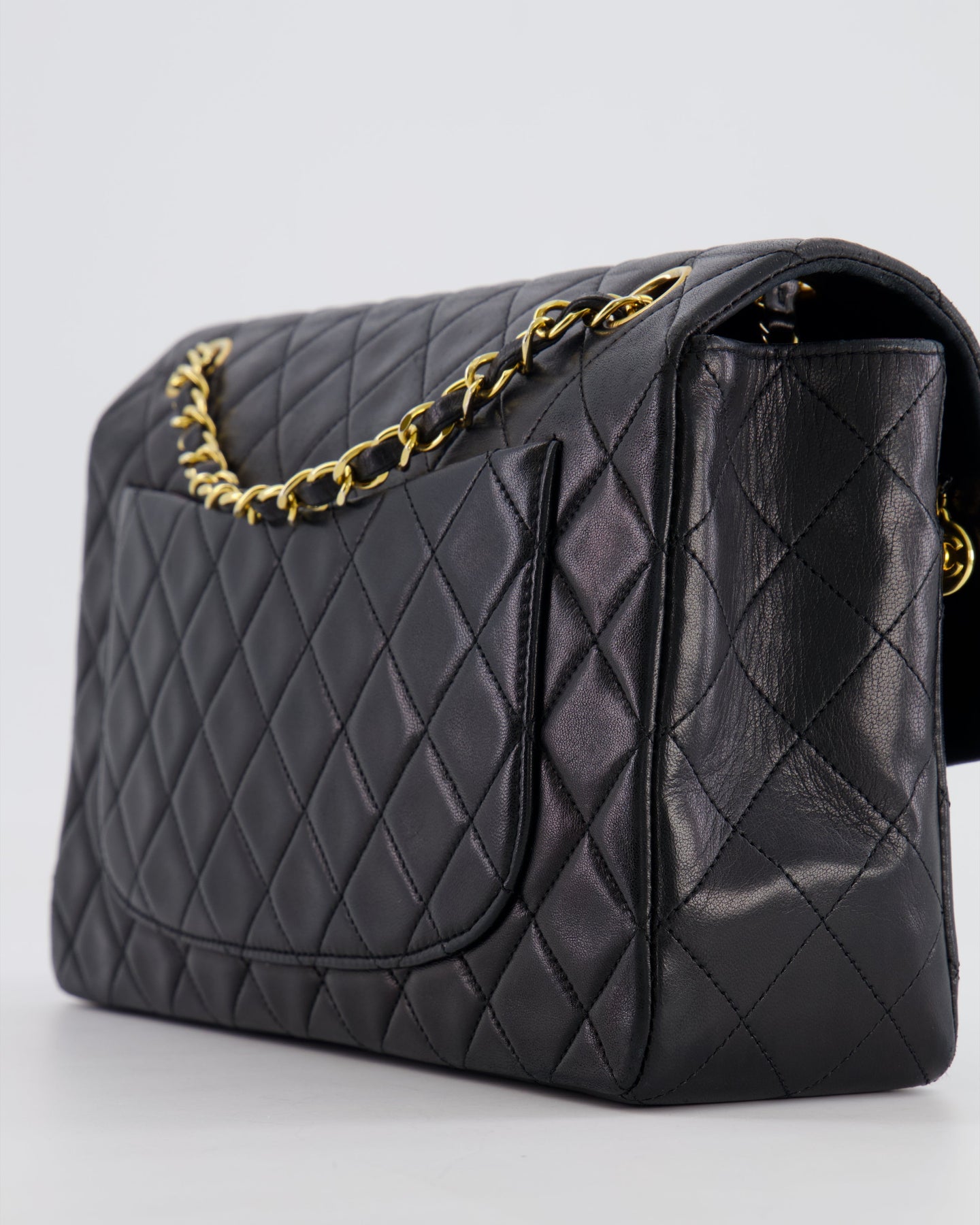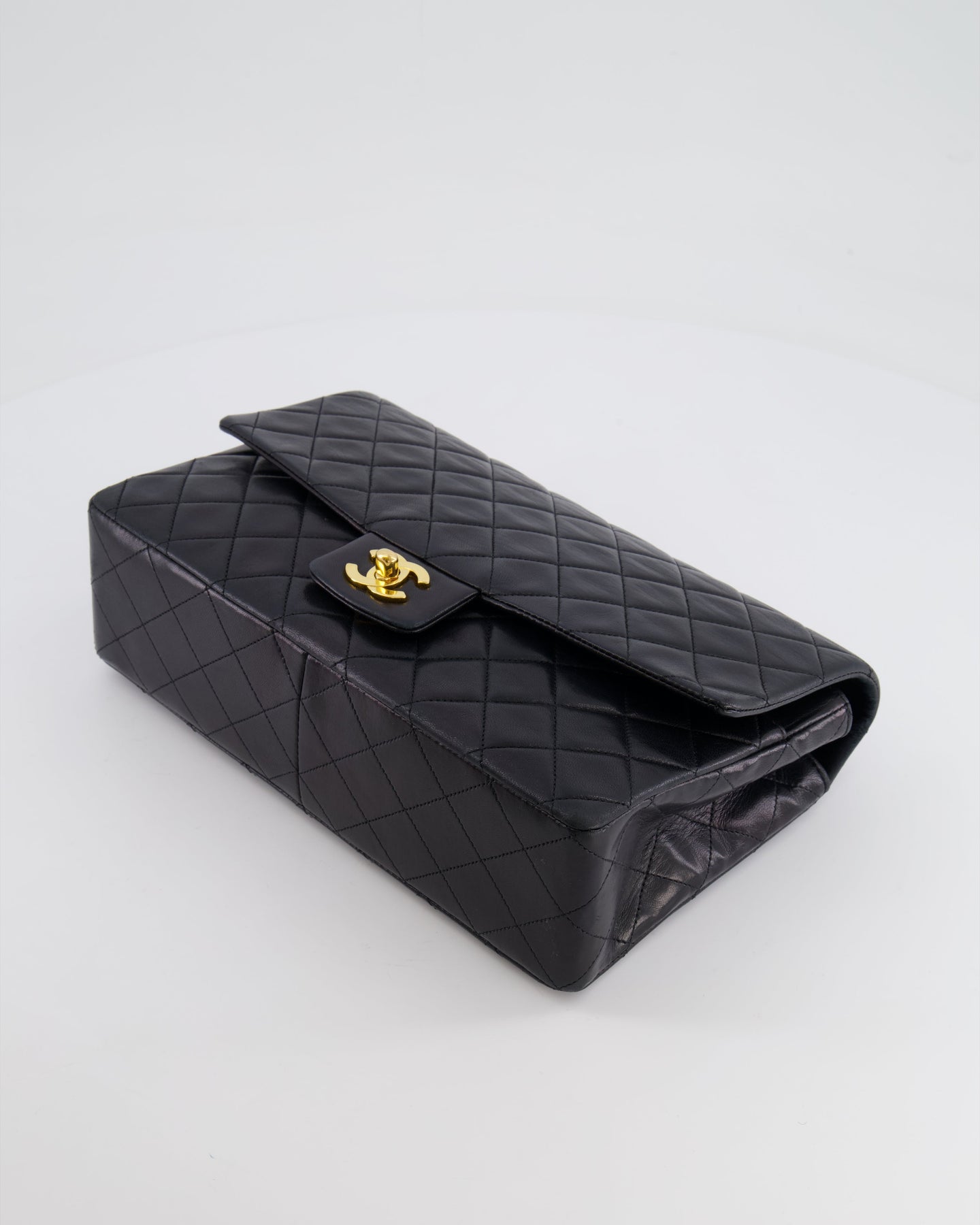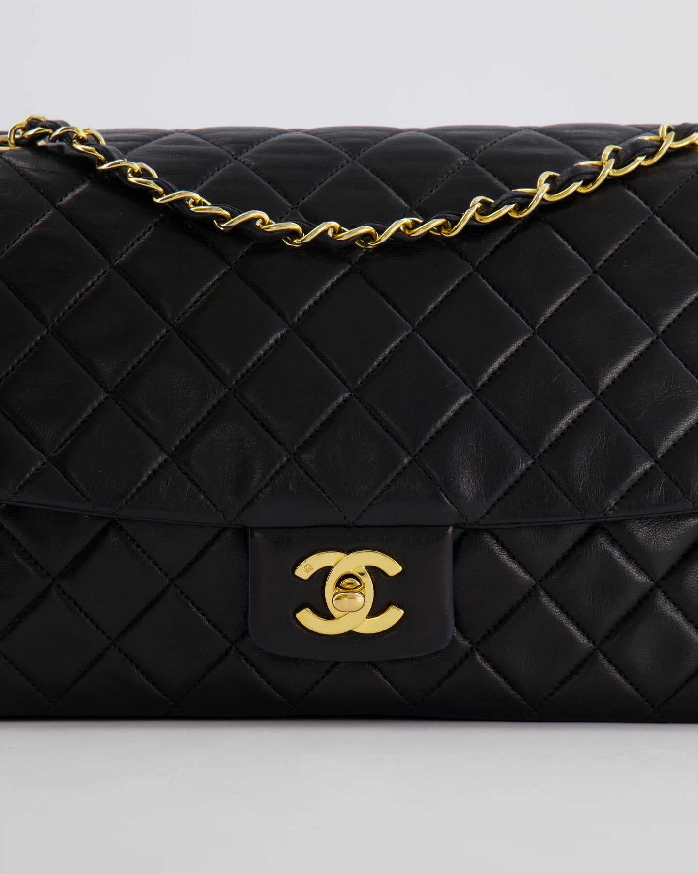 Chanel Vintage Black Medium Classic Single Flap Bag in Lambskin Leather with 24K Gold Hardware