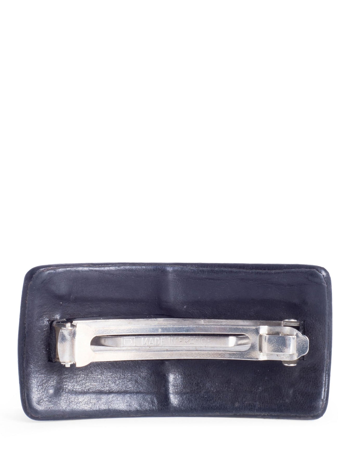 CHANEL Vintage CC Logo Hair Clip or . This CHANEL hair clip features vintage black leather and a prominent 24K gold CC logo. This hair clip was featured in the iconic Spring 1995 collection designed by Karl Lagerfeld.