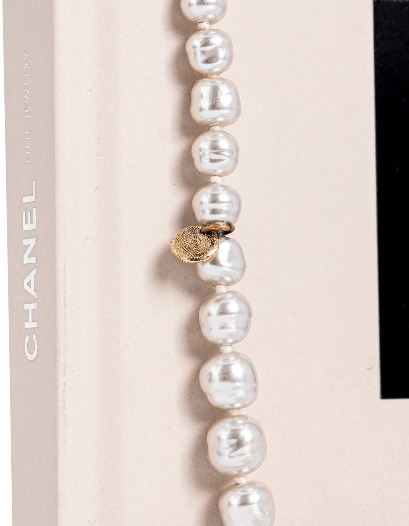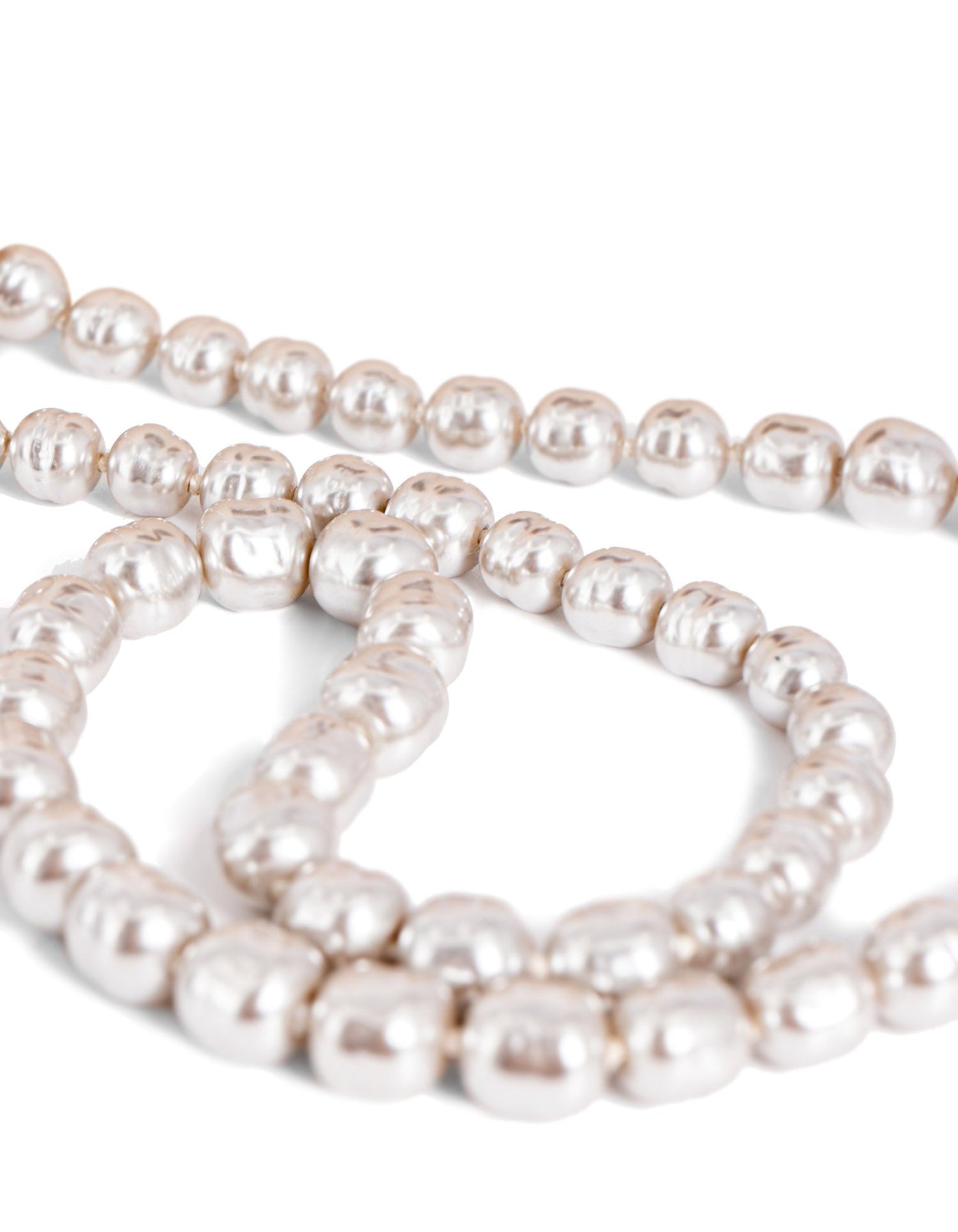 Chanel CC Logo Pearl Long Necklace or . This necklace features multi sized pearls that have a silver tone to them and gold hardware.