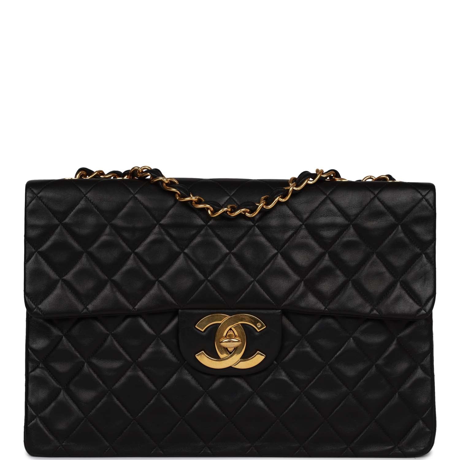 Vintage Top Quality Chanel XL Maxi Flap Bag Black Lambskin Gold Hardware