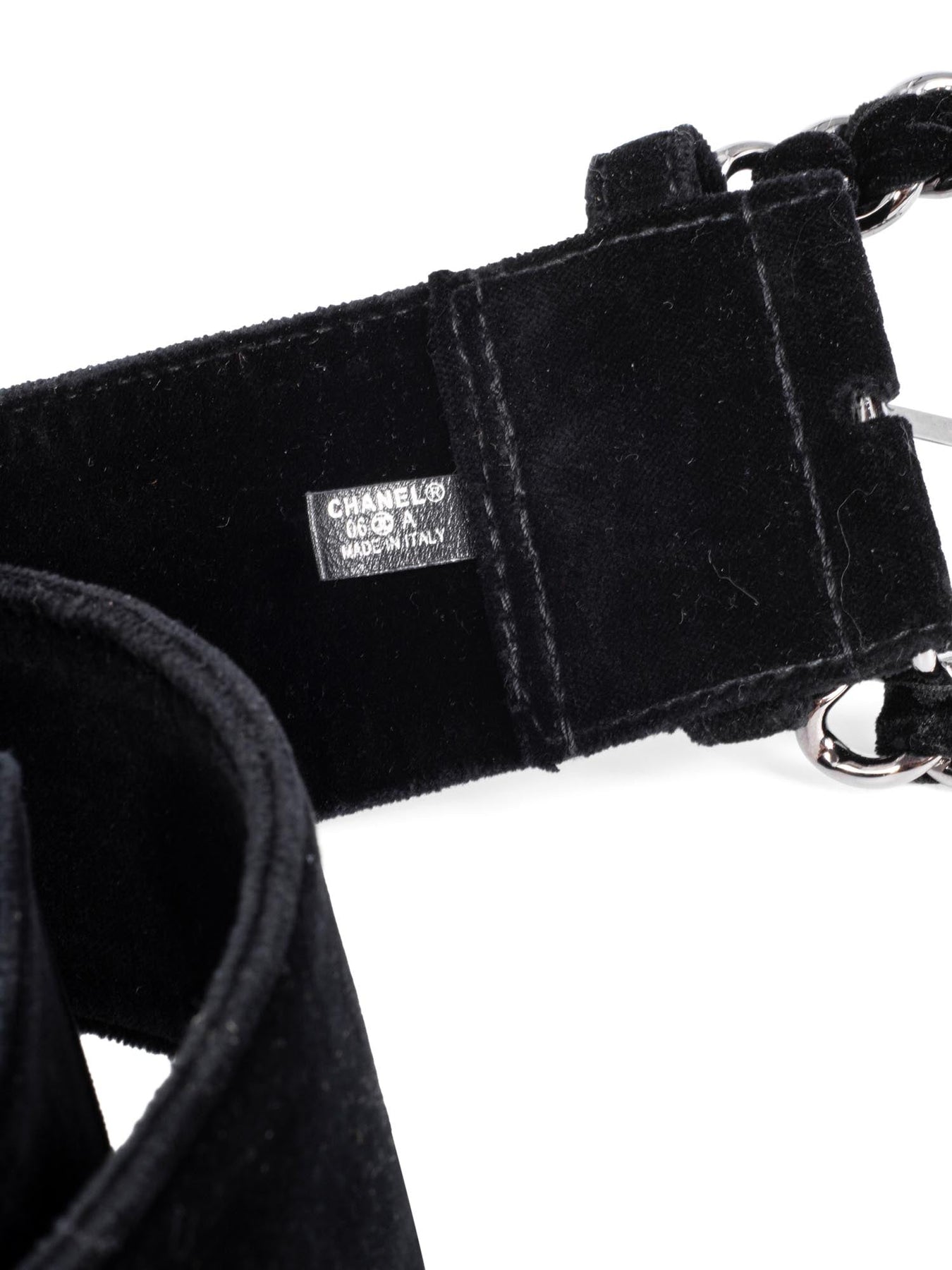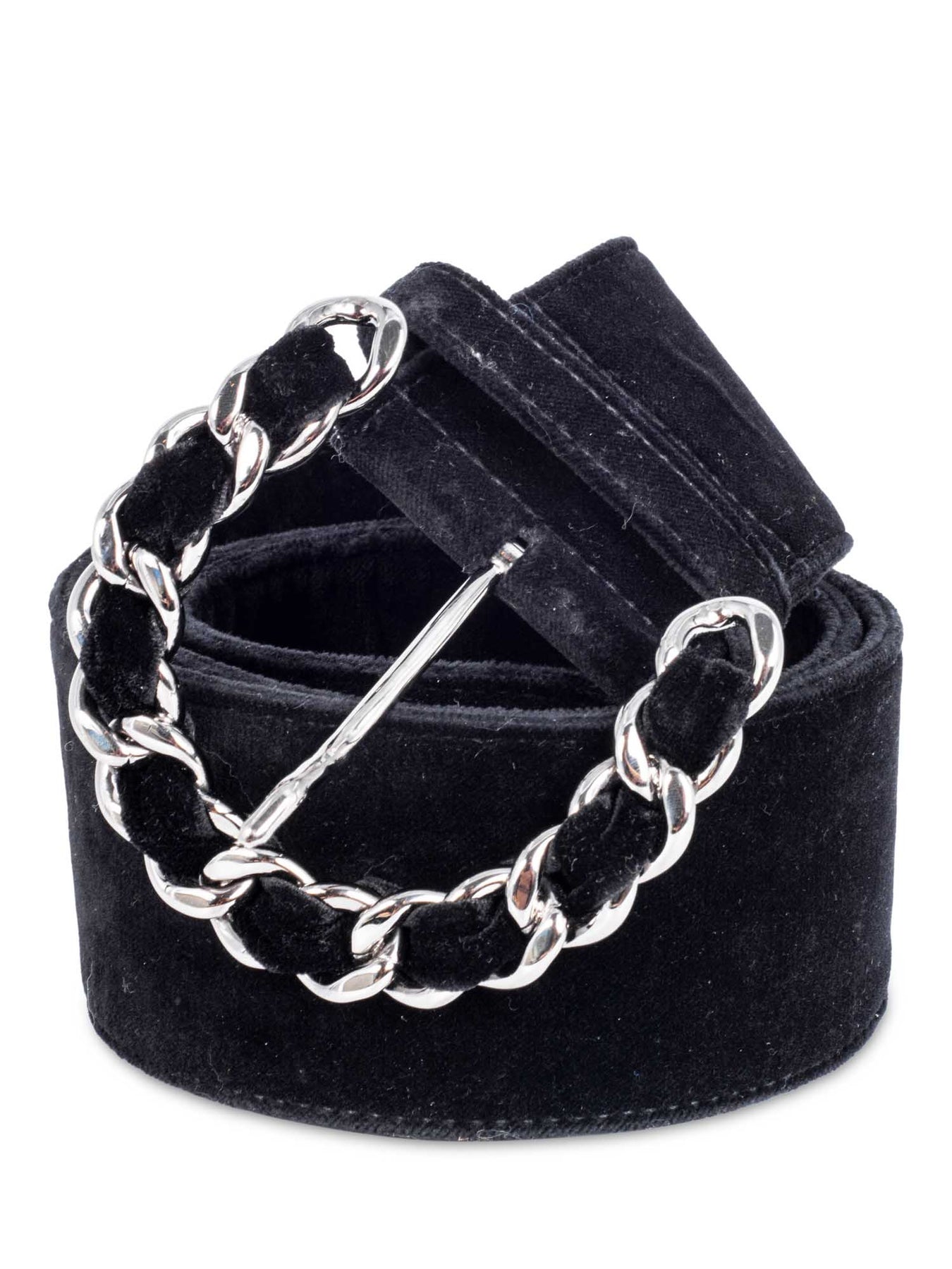 Chanel Vintage Silver Chain Link Belt or . It is highly collectable (from 2006 Collection) and features an oversized silver chain buckle and plush black velvet. Purchasing this item continues its story, so you can be confident that you’re making a POSITIVELY CONSCIOUS choice for the planet.