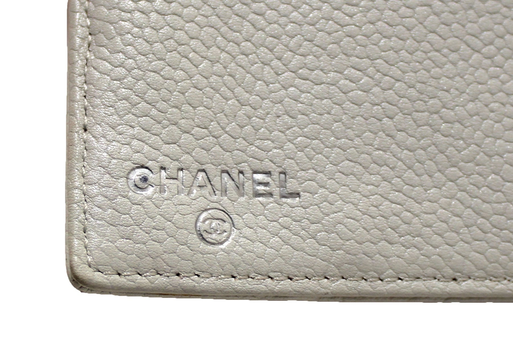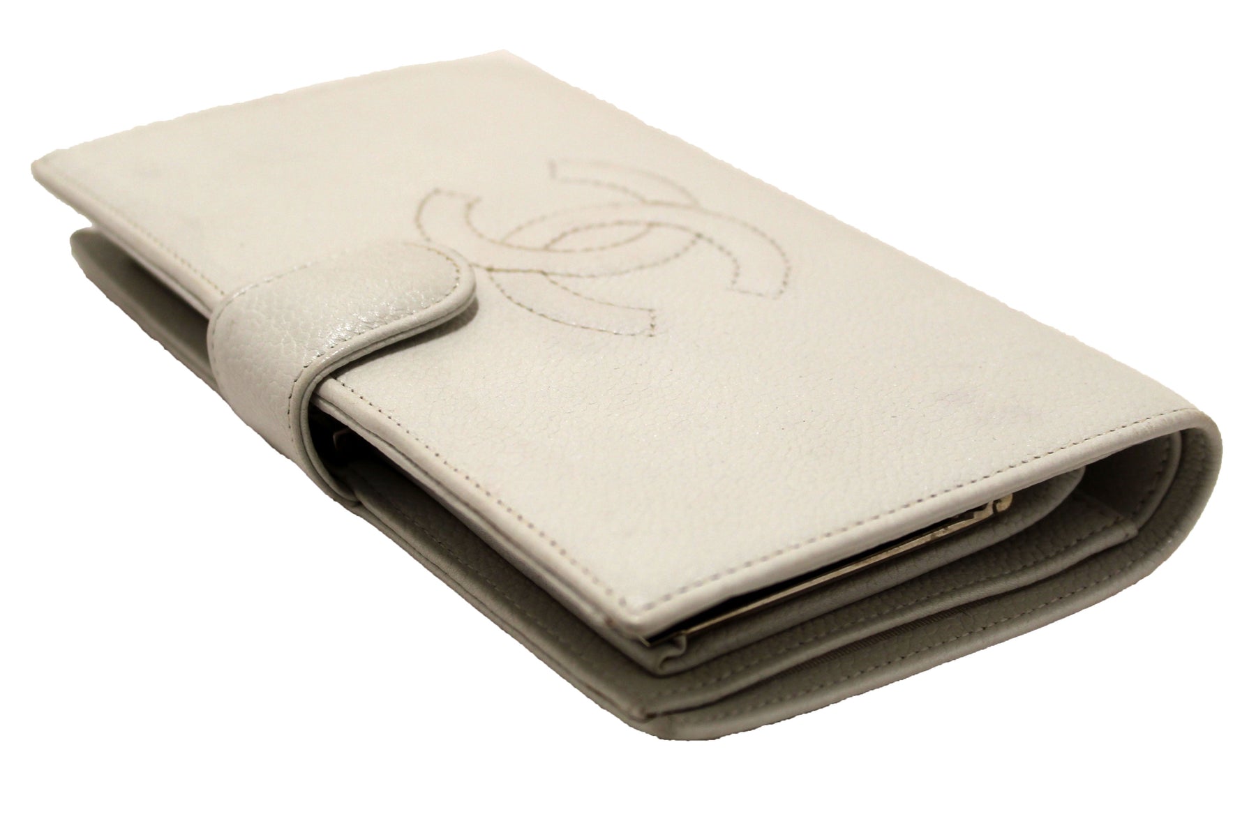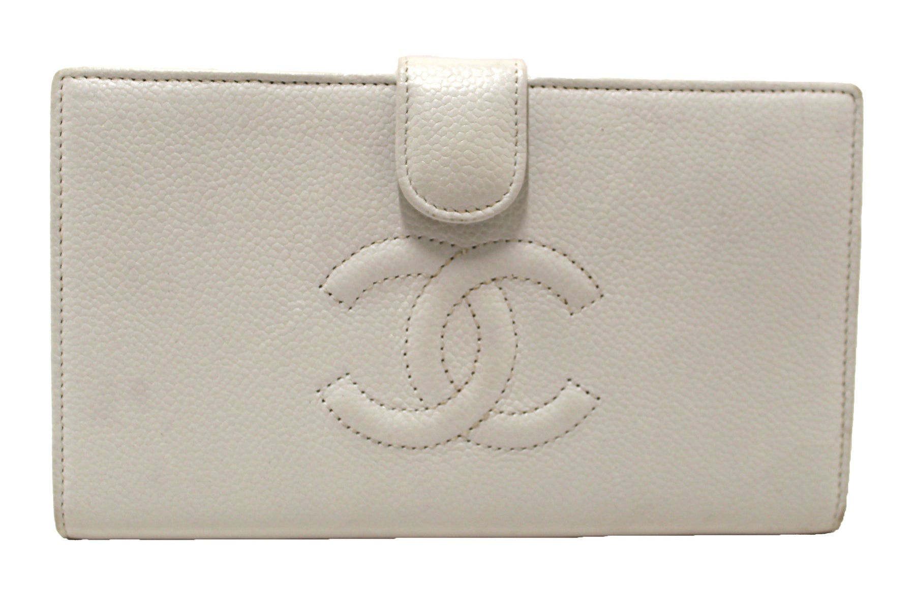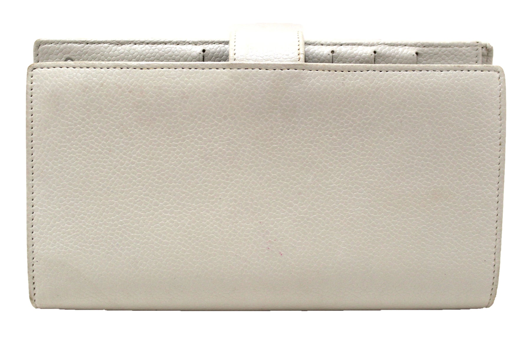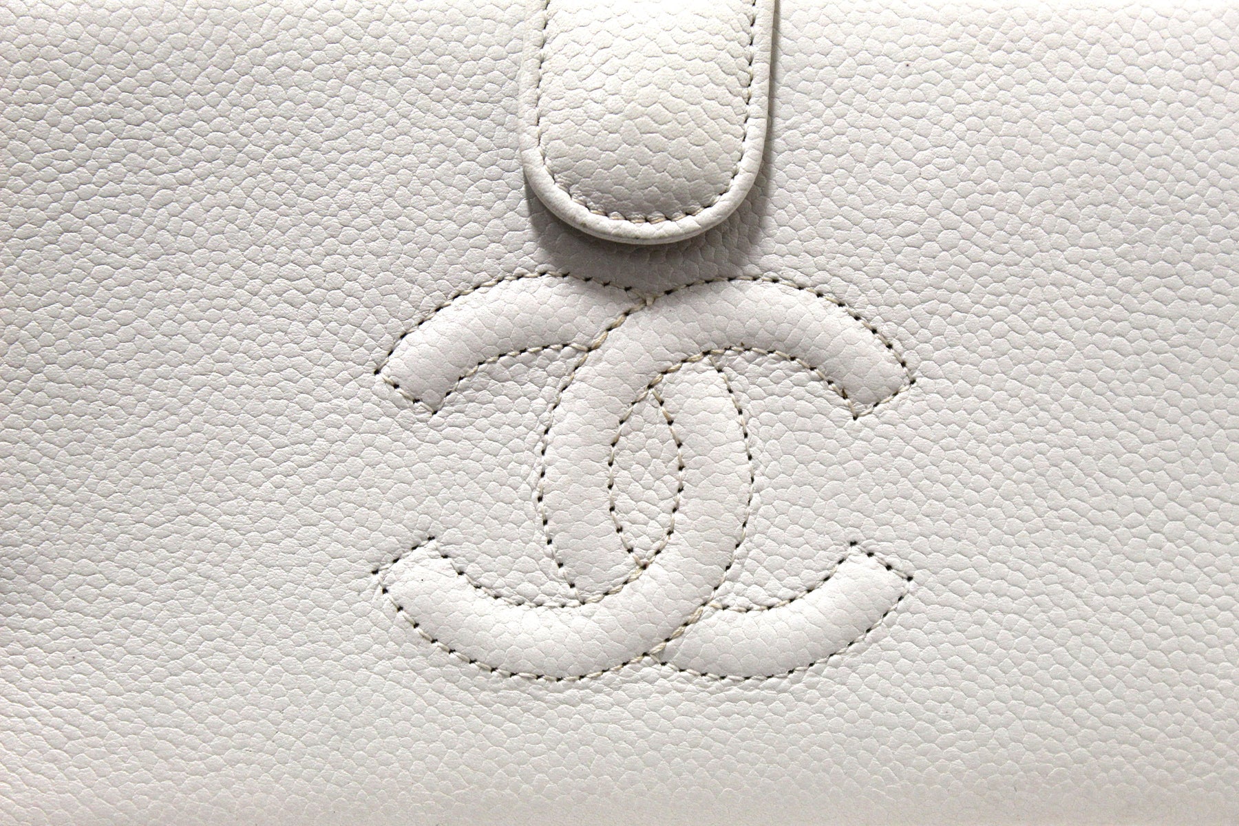 Chanel Vintage White Caviar CC Leather Classic Long Wallet