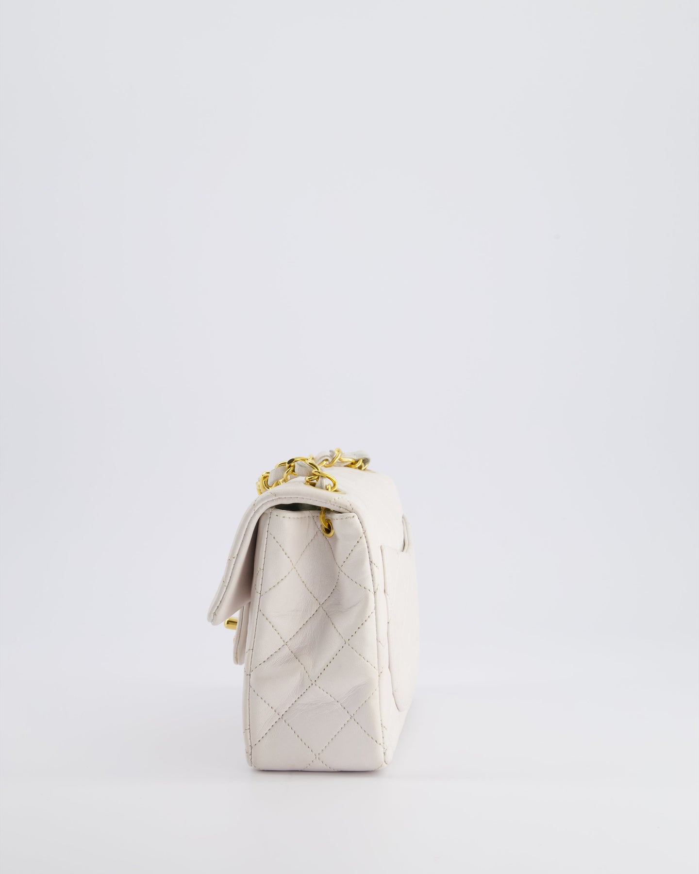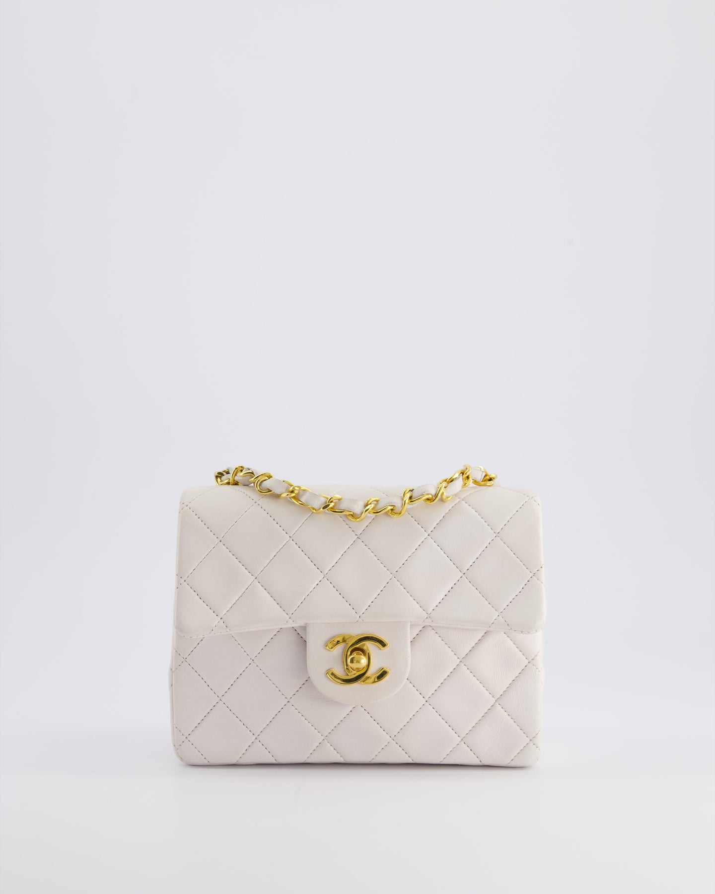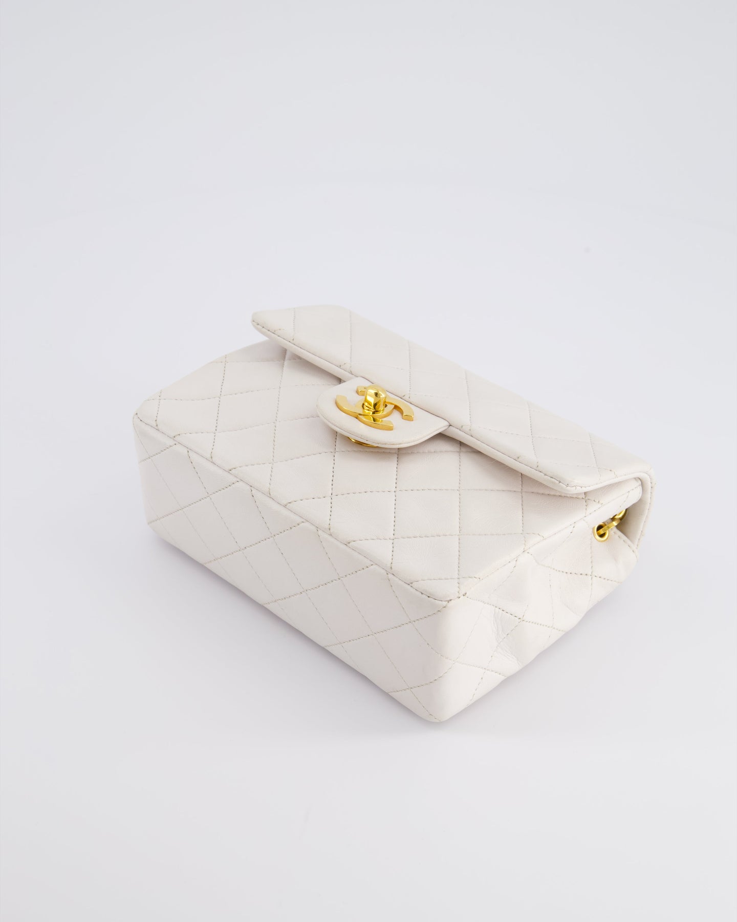 Chanel Vintage White Mini Square Bag in Lambskin Leather with 24K Gold Hardware