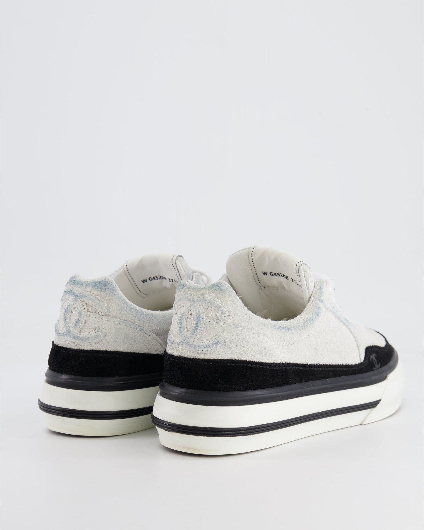 Chanel Coco 23B White and Black Suede Trainers with CC Logo Size EU 37.5