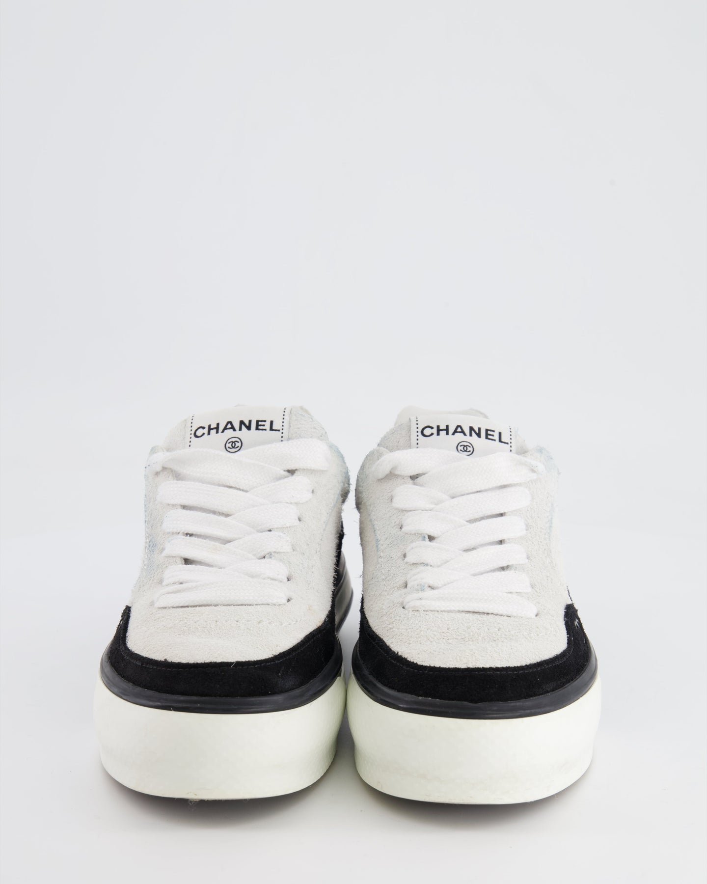 Top Quality Chanel Coco 23B White and Black Suede Trainers with CC Logo Size EU 37.5