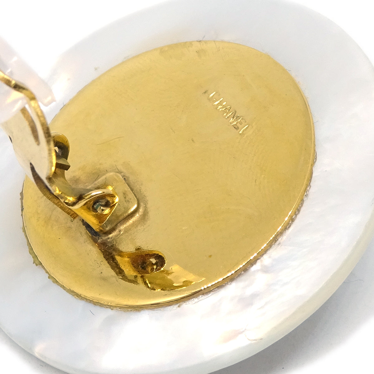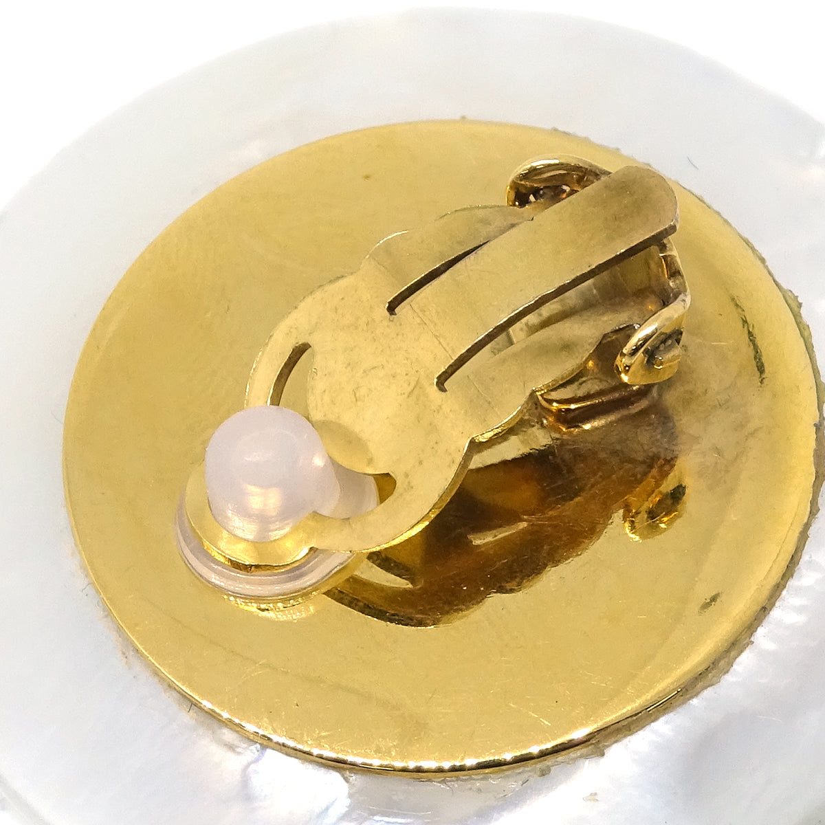 Top Quality Chanel White Black Button Shell Earrings Clip-On 95P