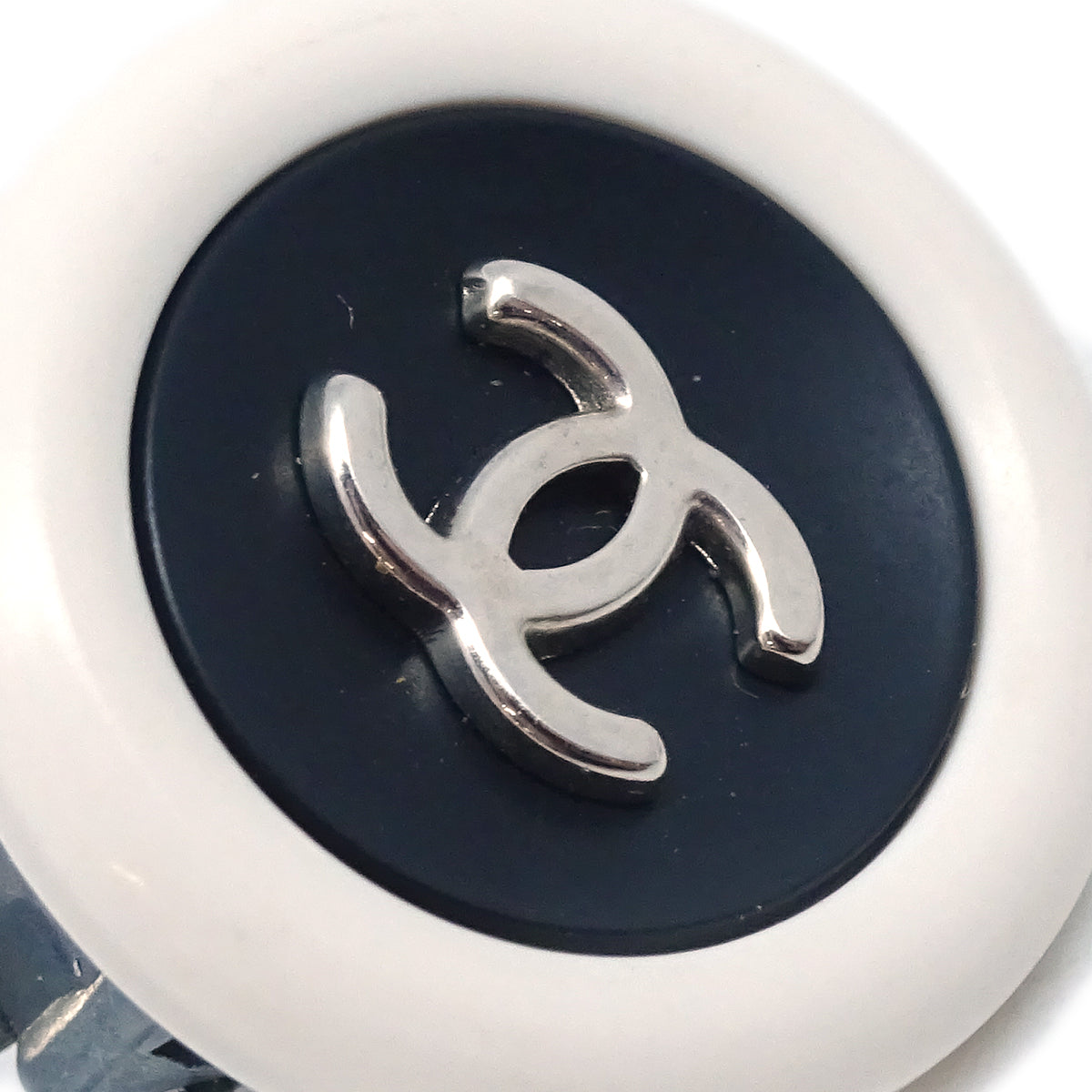 Chanel White Button Earrings Clip-On 96P Engraved / Number 96P Size(Inch) Diameter: 0.8 " Size(cm) Diameter: 2.0 cm Color / Material Black, White, Gold / Acrylic, Gold plated Accessory - SKU Number 123456 Damage Exterior Fair Condition