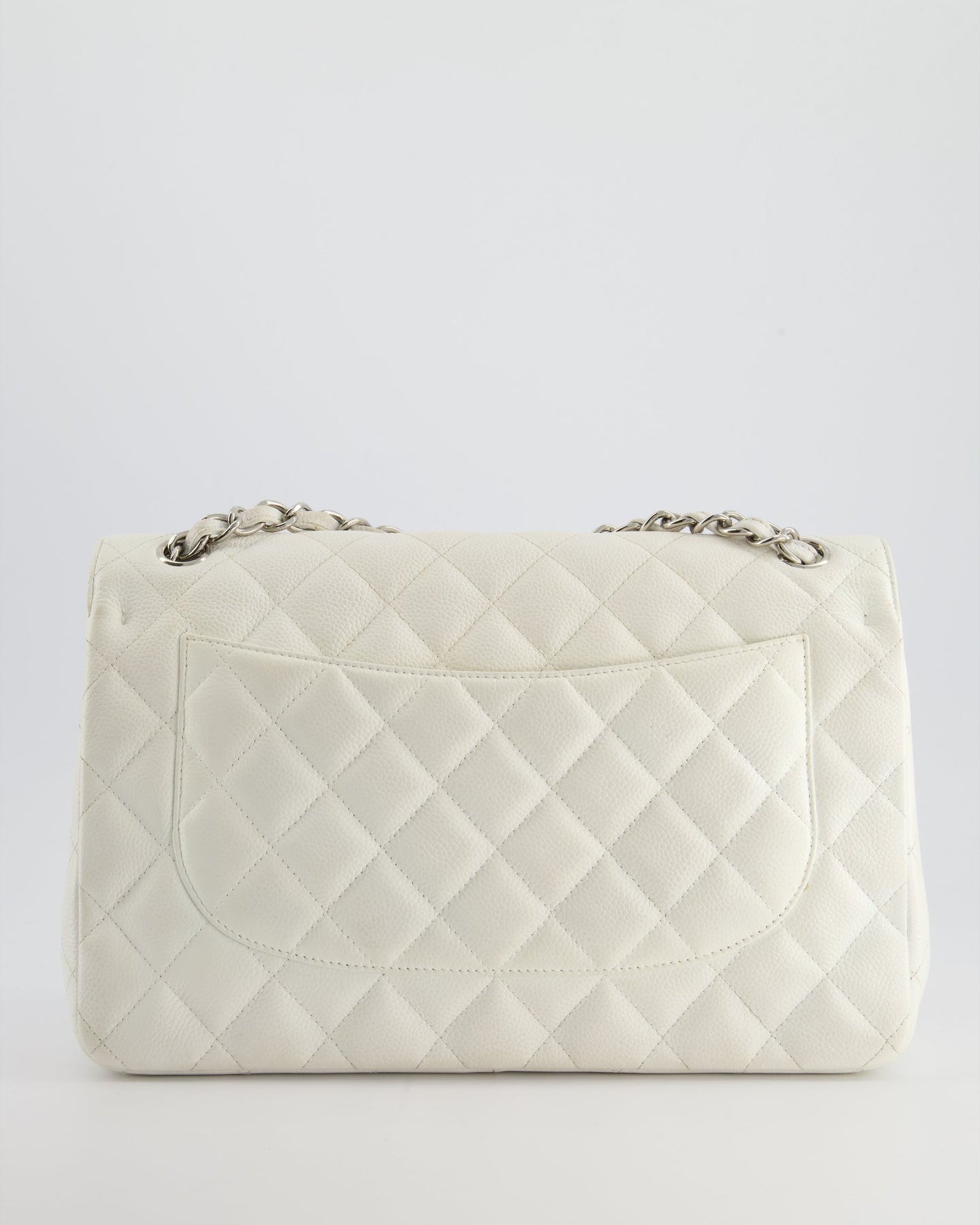 Chanel White Jumbo Classic Double Flap Bag in Caviar Leather with Silver Hardware