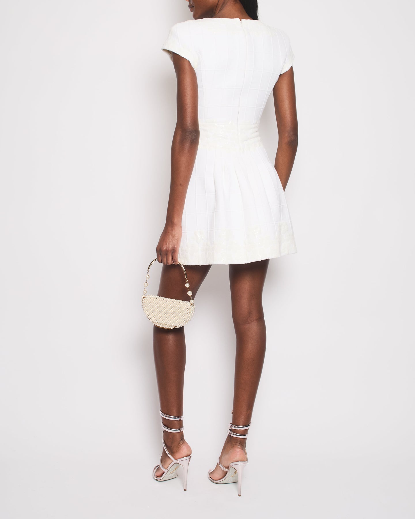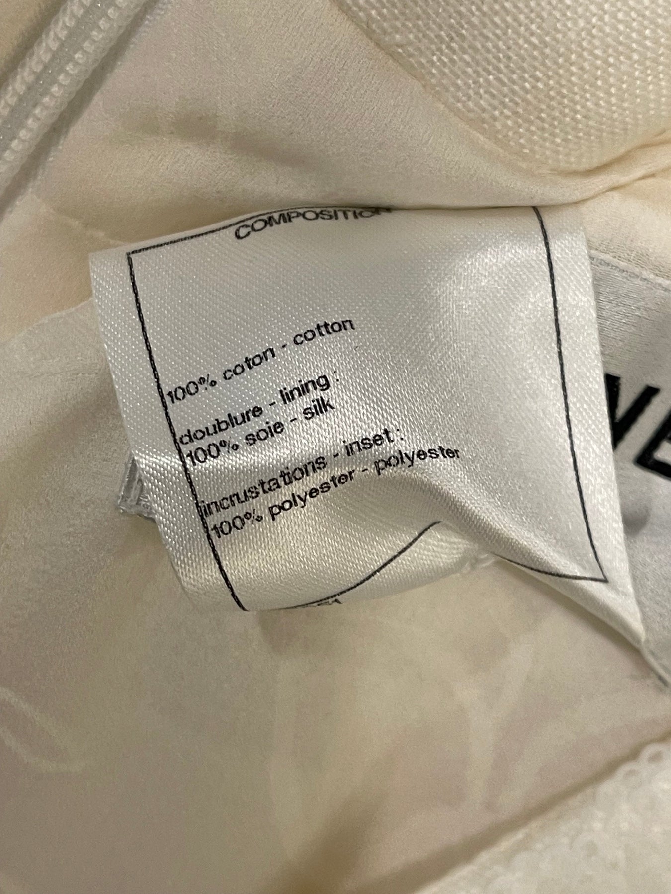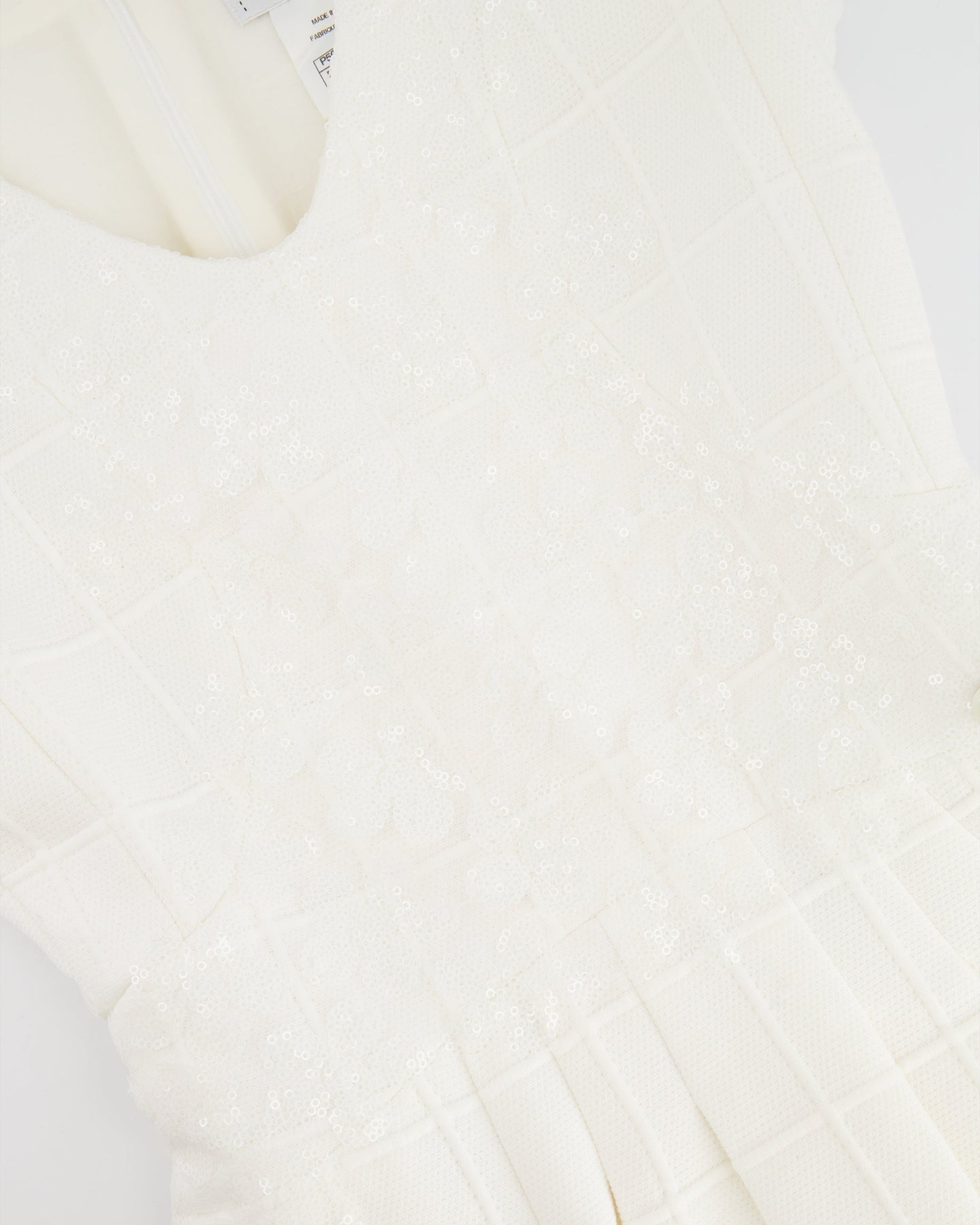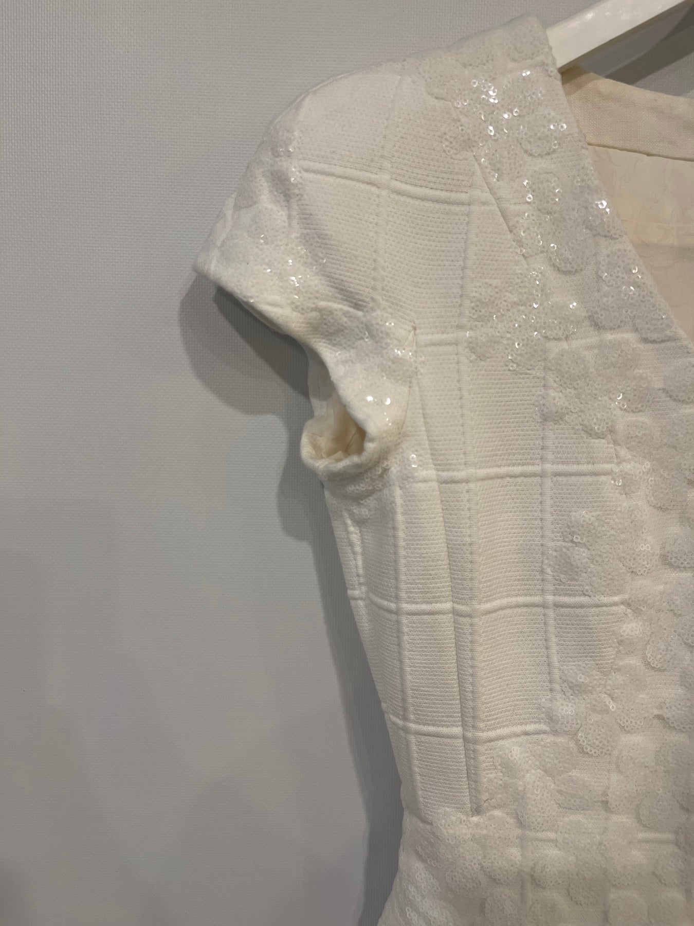 Chanel White Short Sleeve Sequin Floral Embellished Mini Dress Size FR 36 (UK 8)