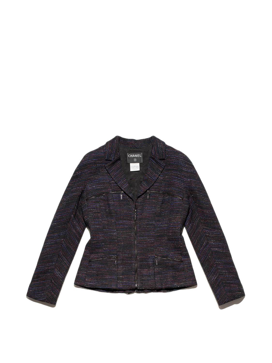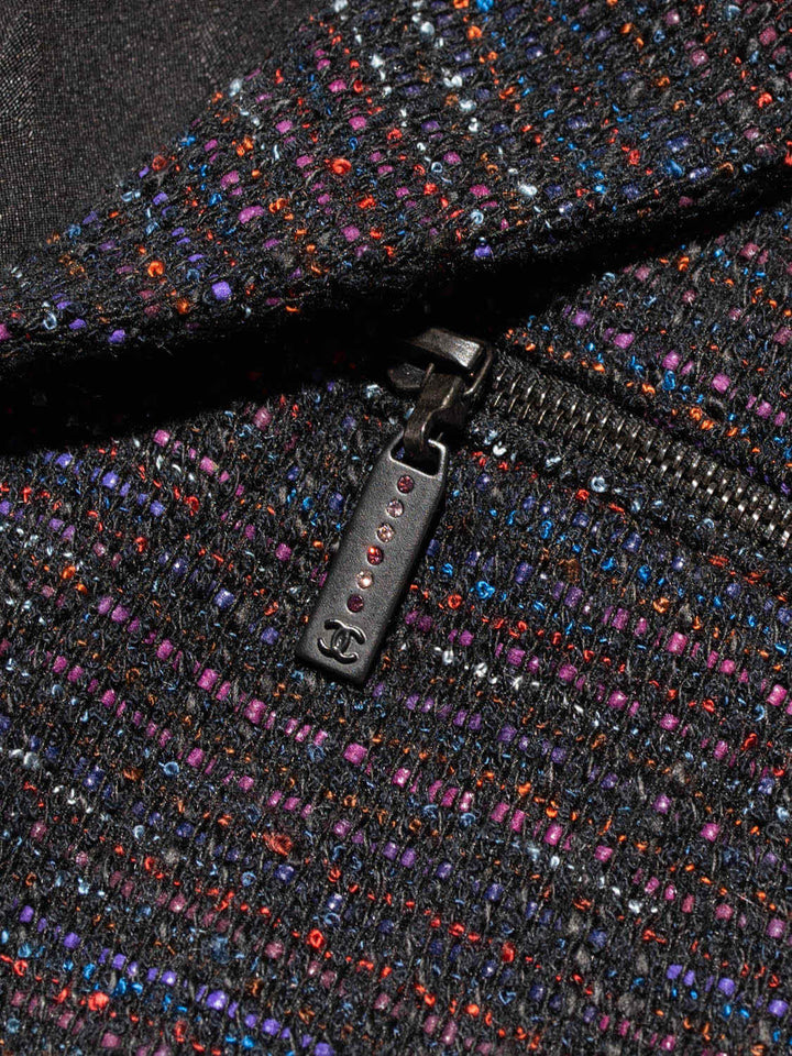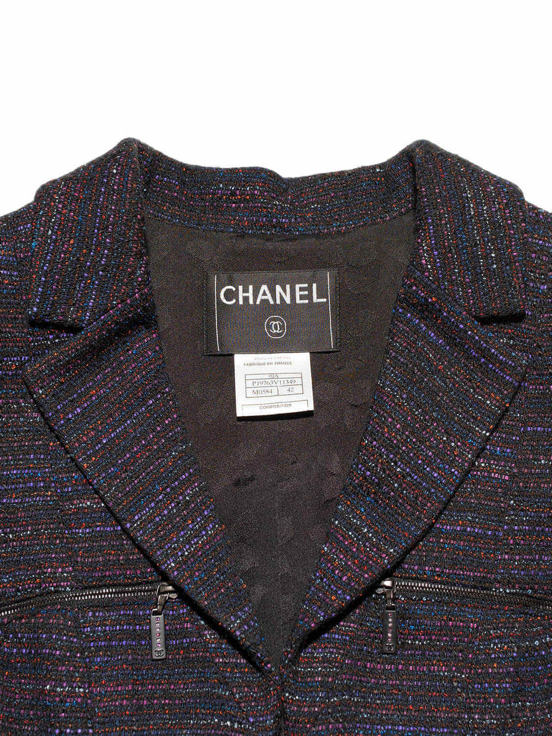 Chanel Pant Suit Set or . This Chanel suit set is in multi-color tweed fabric with zip closure four front zipped pockets and zipped detailing on the back. The suit pants feature CC logo button and zip closure.