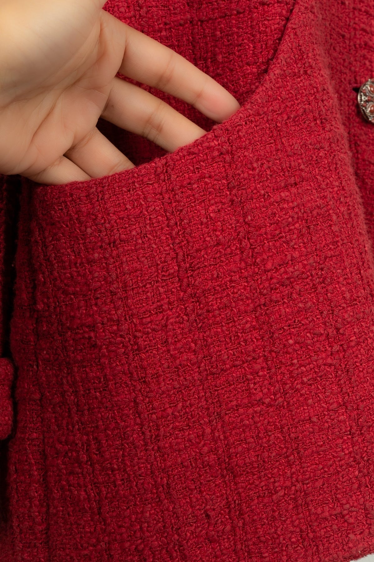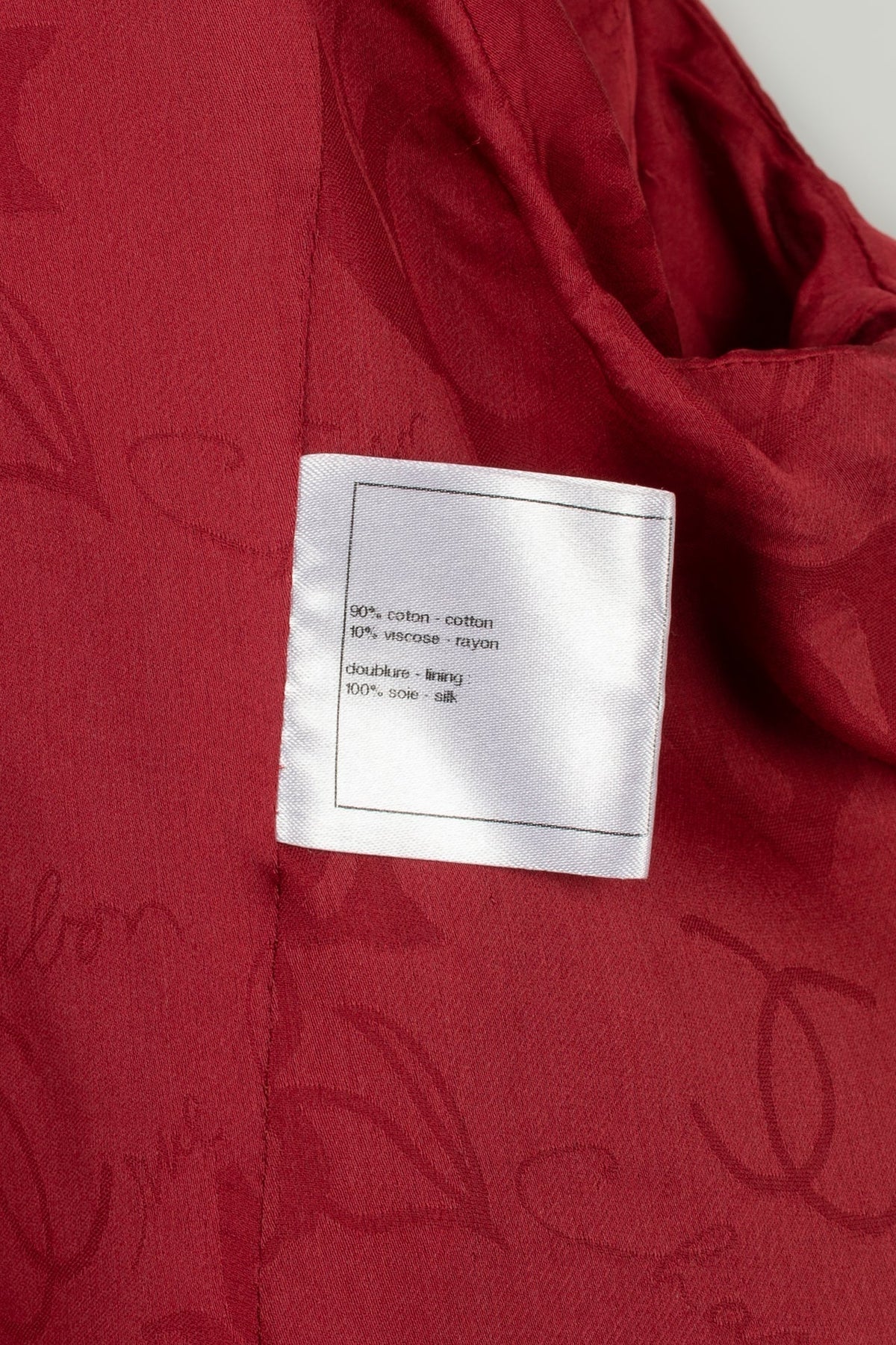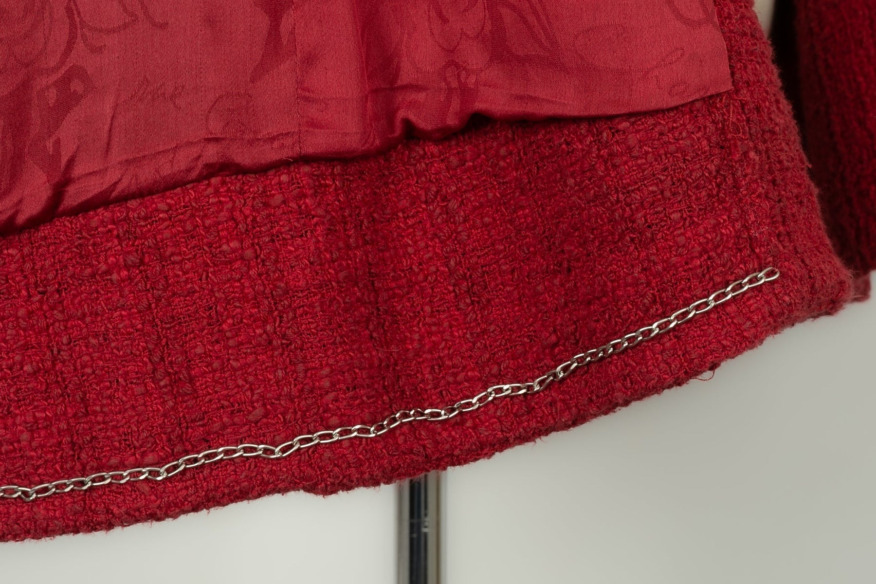 CHANEL -(Made in France) Veste rouge en tweed de coton et doublure en soie. Taille 50FR.