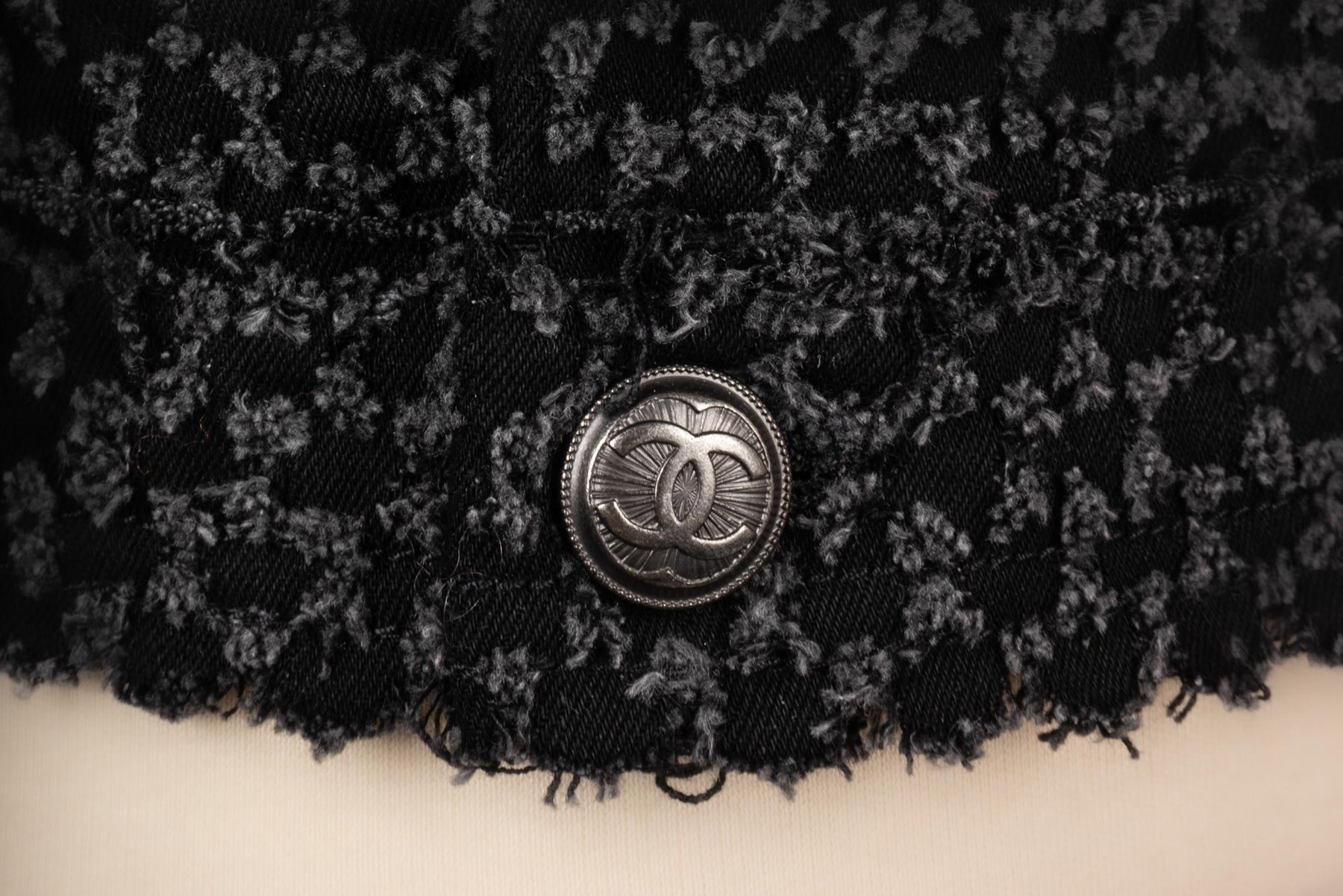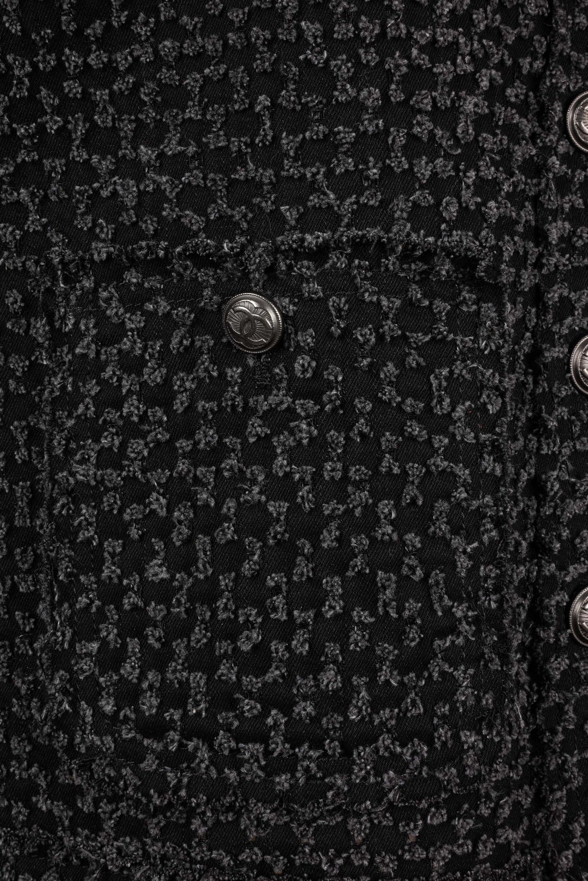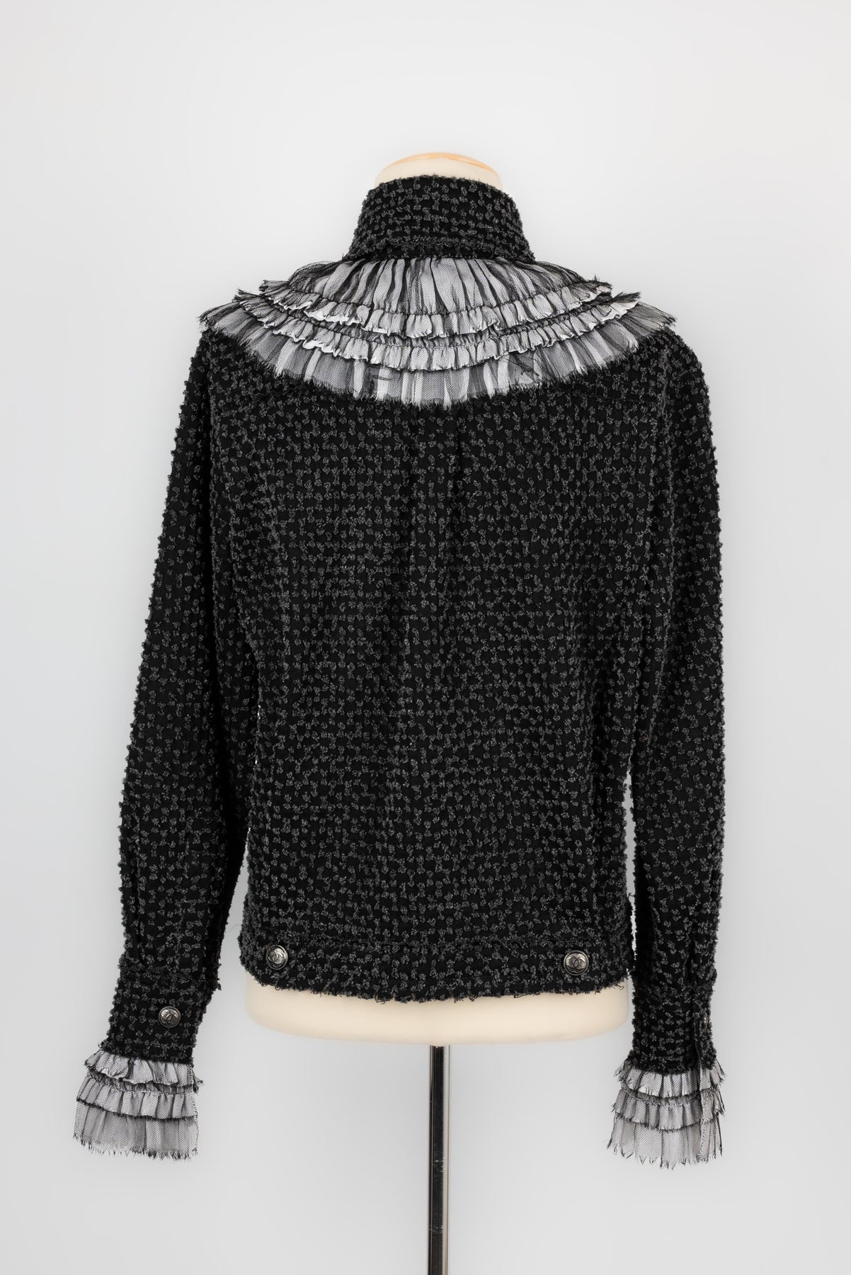 CHANEL - (Made in Italy) Veste en tweed de coton, bas de manches et tour de col en soie. Taille 38FR.