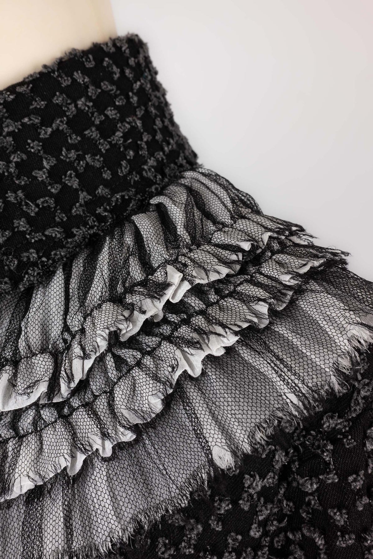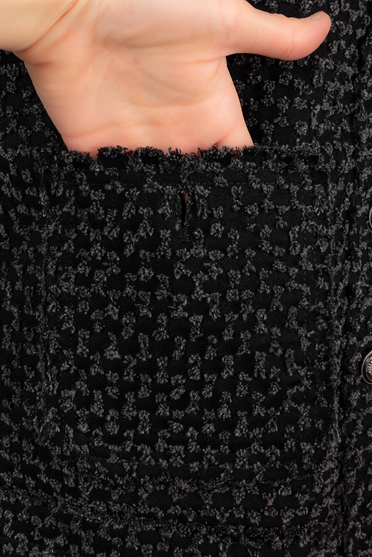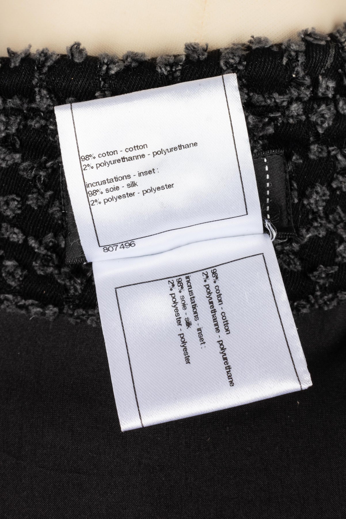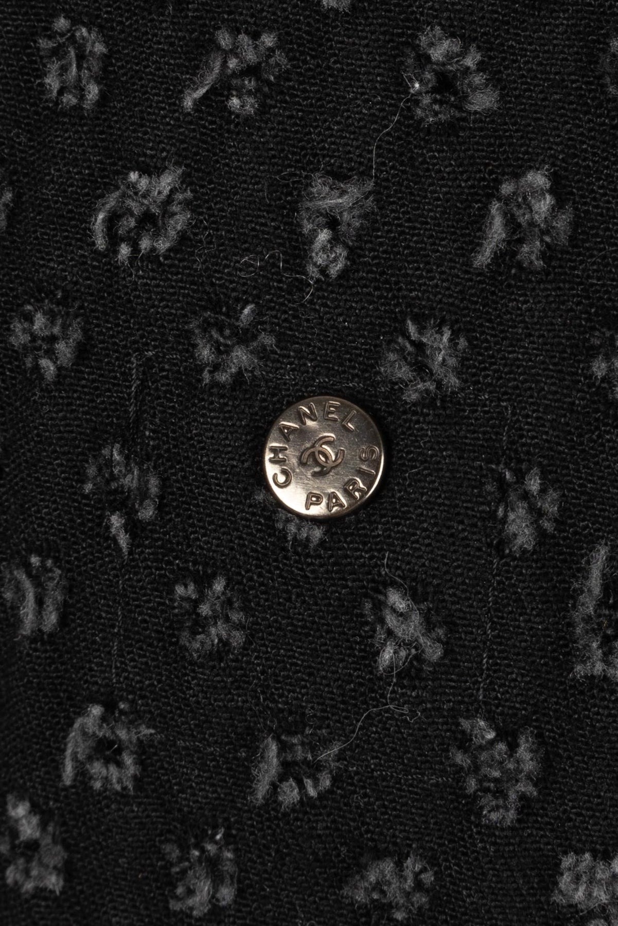 CHANEL - (Made in Italy) Veste en tweed de coton, bas de manches et tour de col en soie. Taille 38FR.