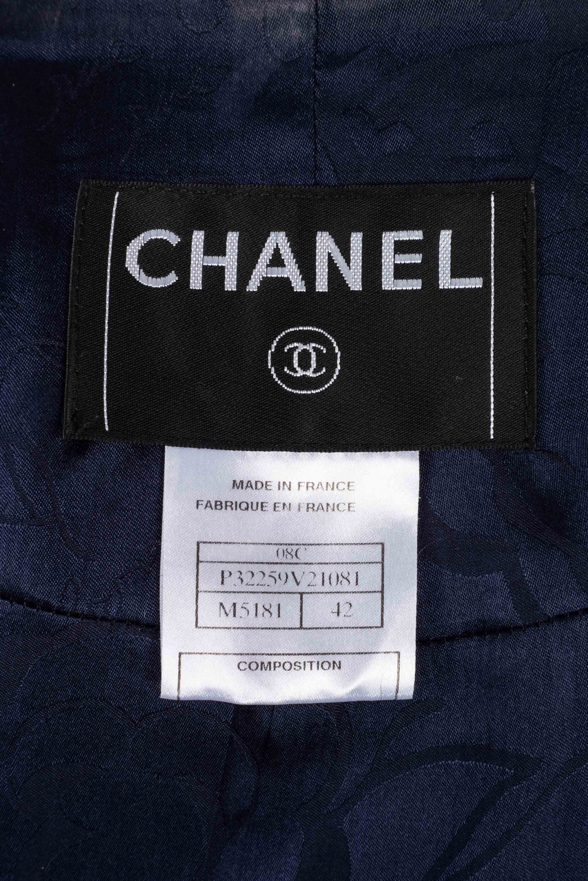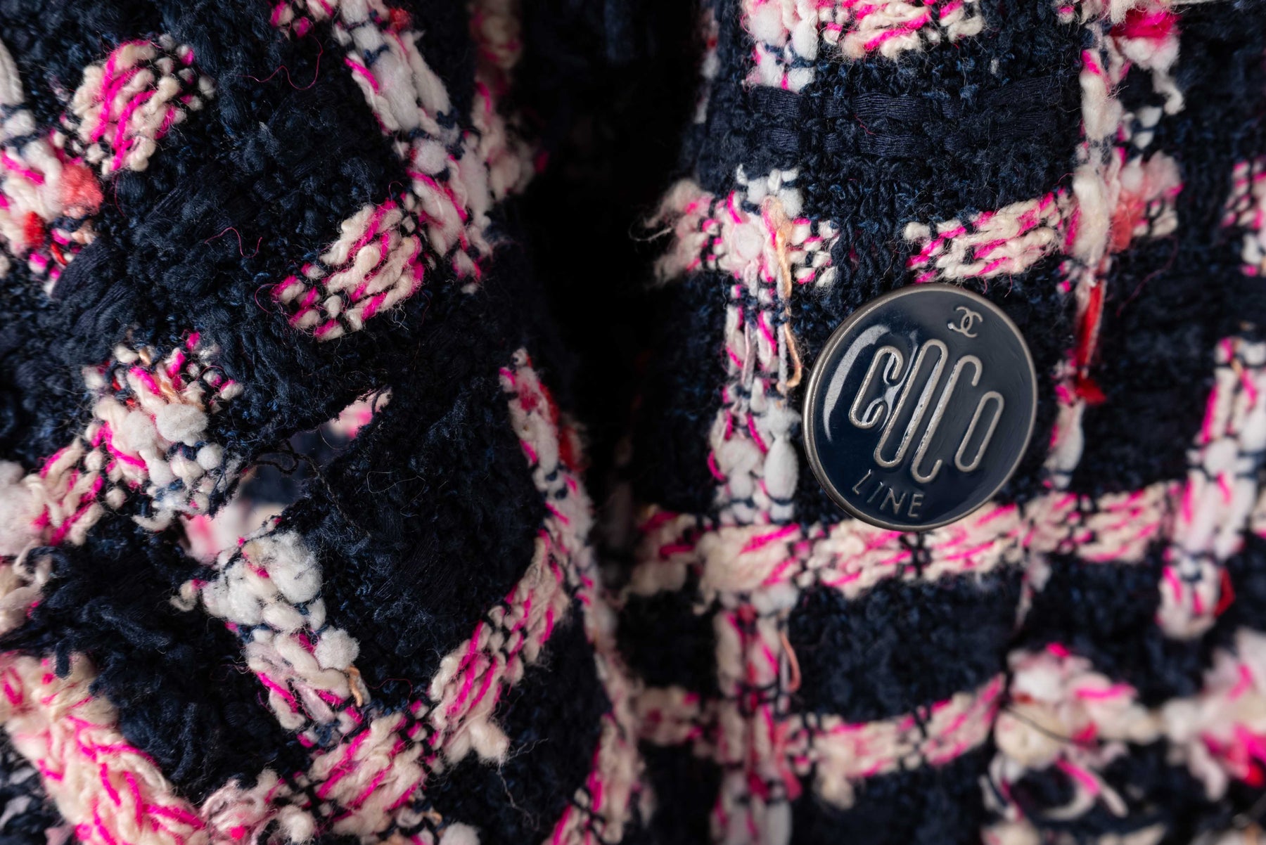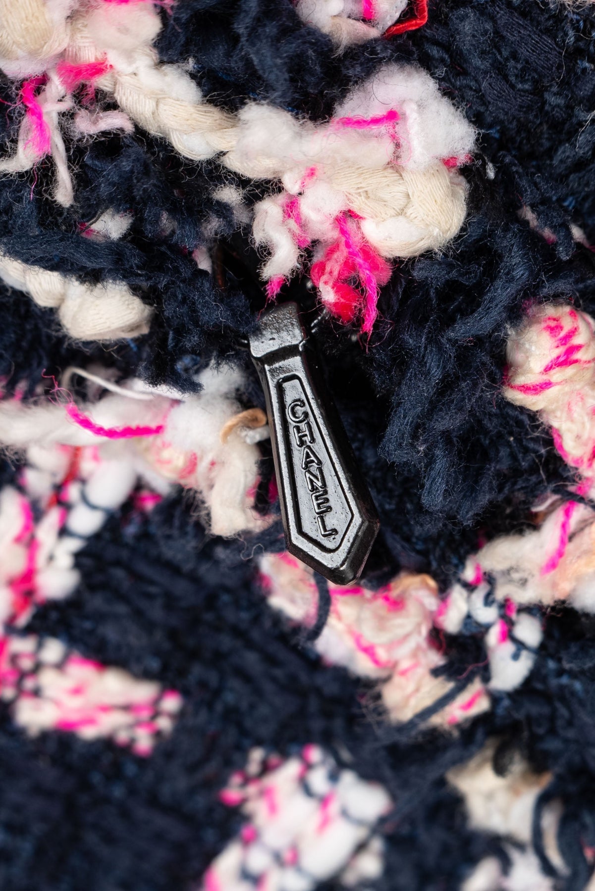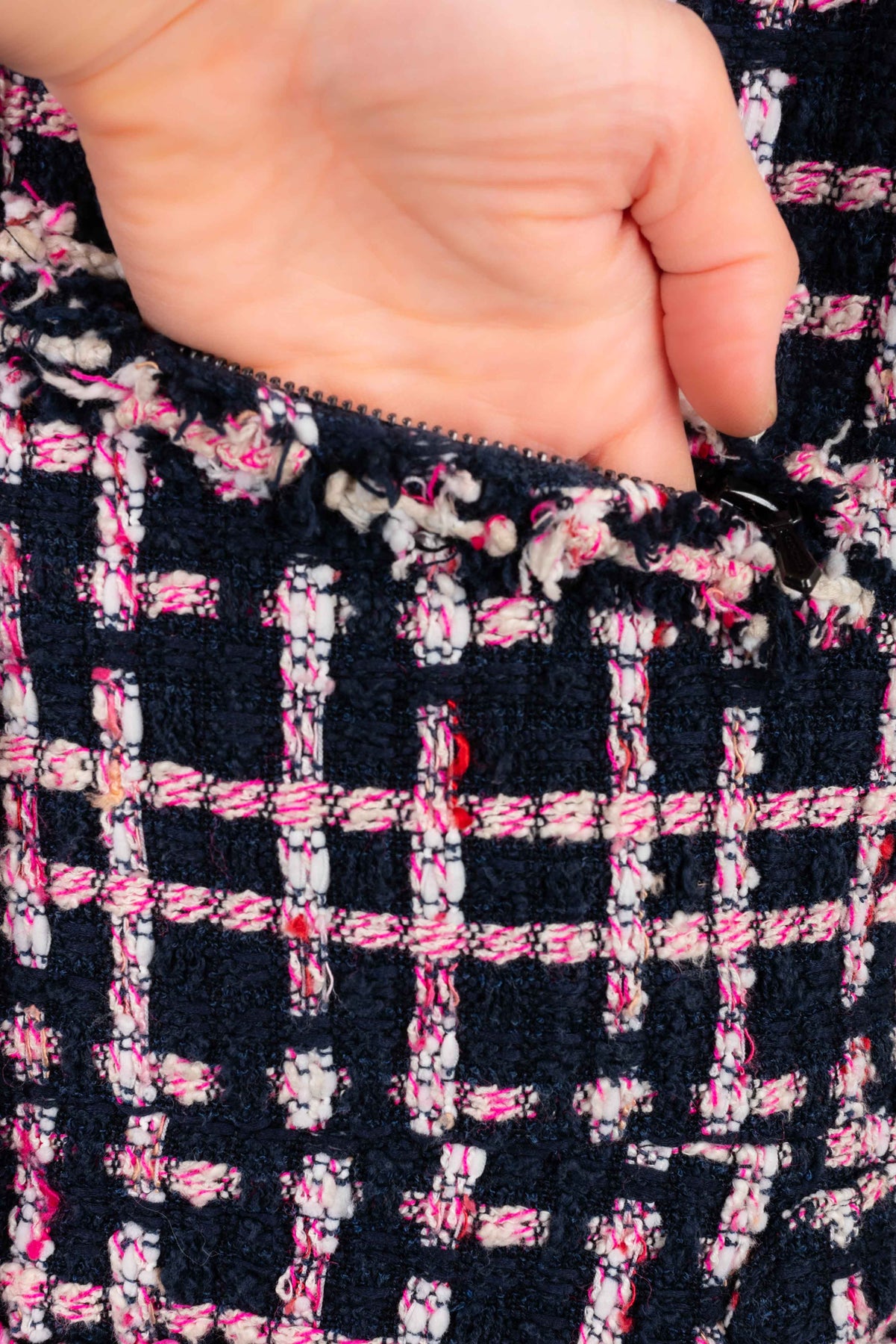 CHANEL - (Made in France) Veste en tweed dans les tons de rose et de bleu marine. Doublure en soie. Taille 42FR. Collection Croisière 2008.